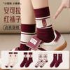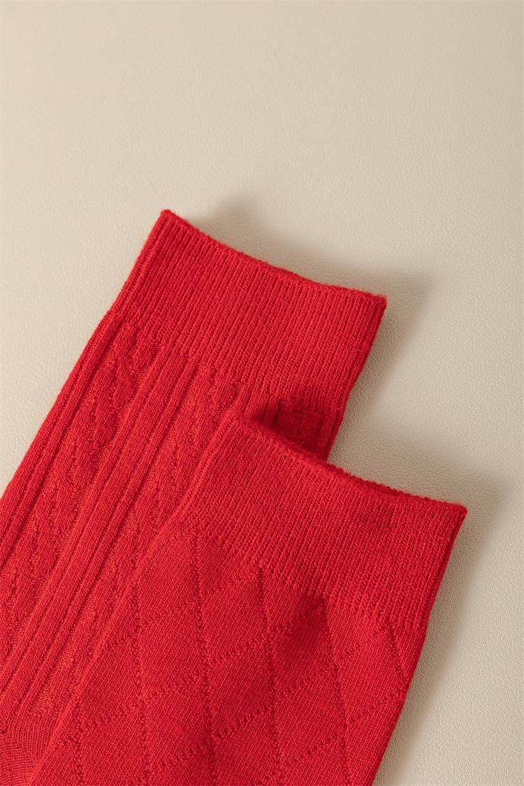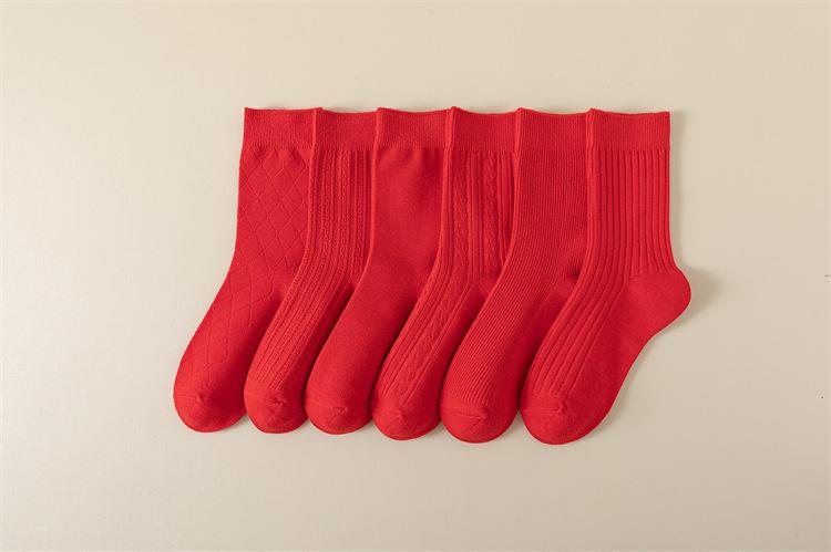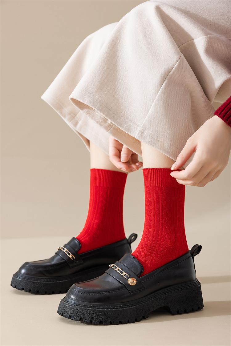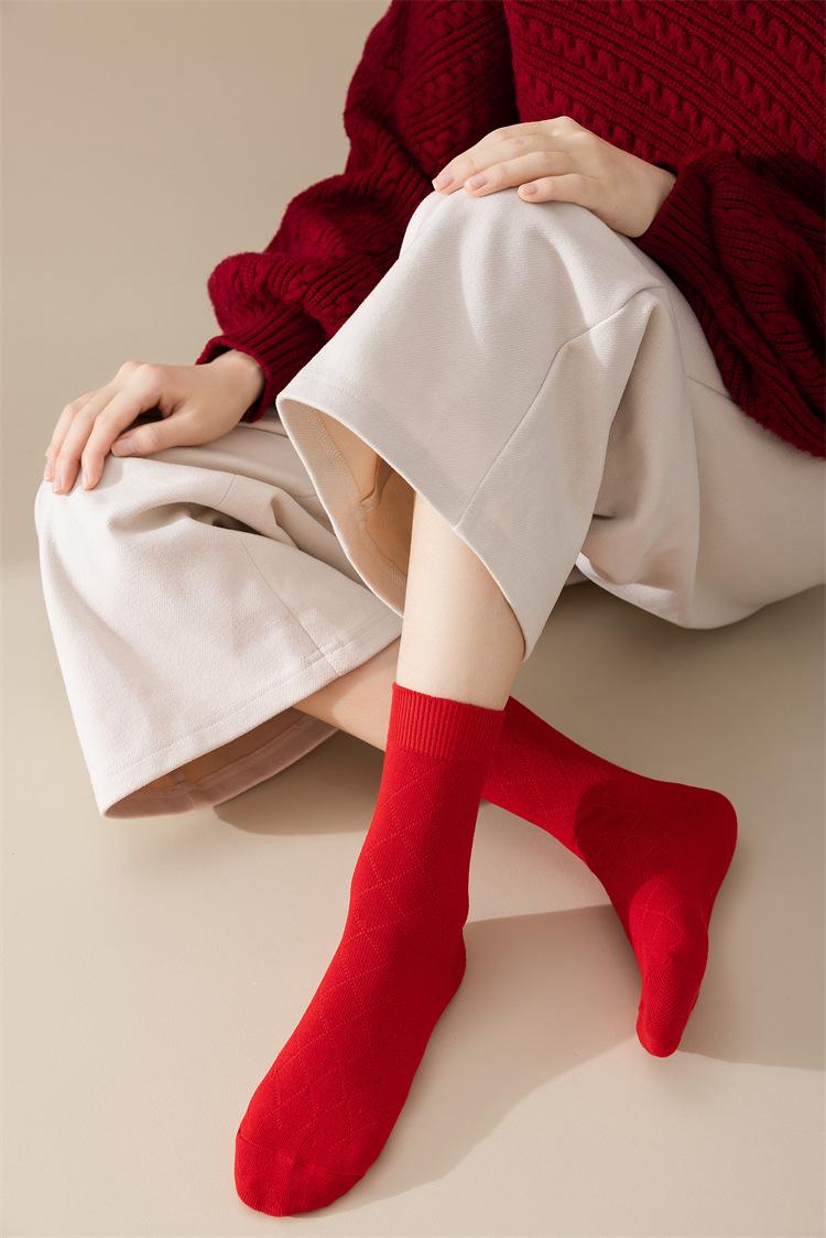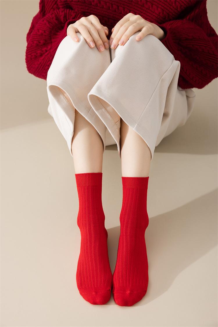 Meias vermelhas de ano novo meias festivas de algodão penteado com agulha dupla ano de nascimento meias da sorte torção japonesa Meias femininas vermelhas de panturrilha