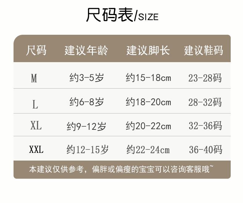 S size 1-3 years old, M size 3-5 years old, L size 6-8 years old, XL Code 9-12 years old