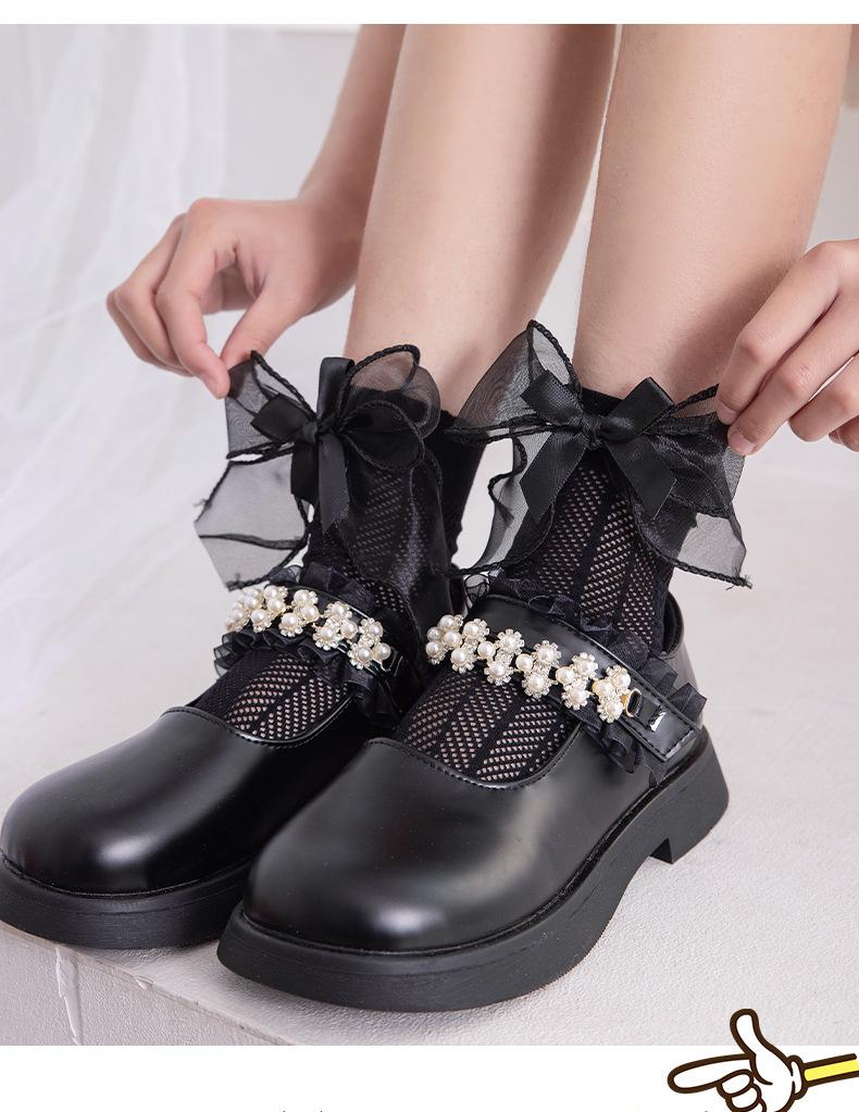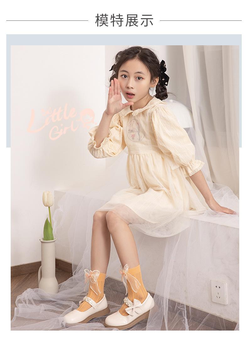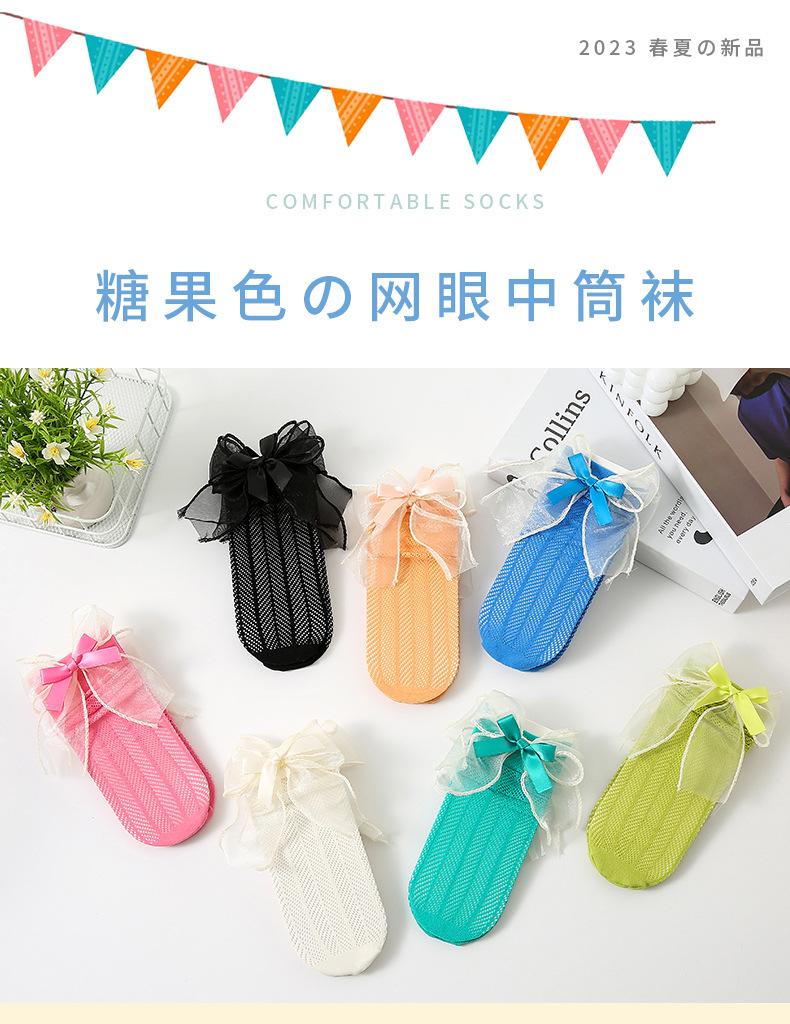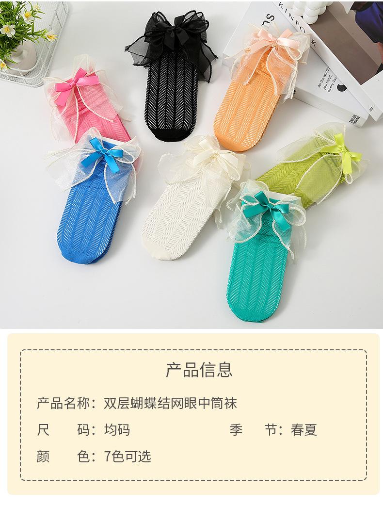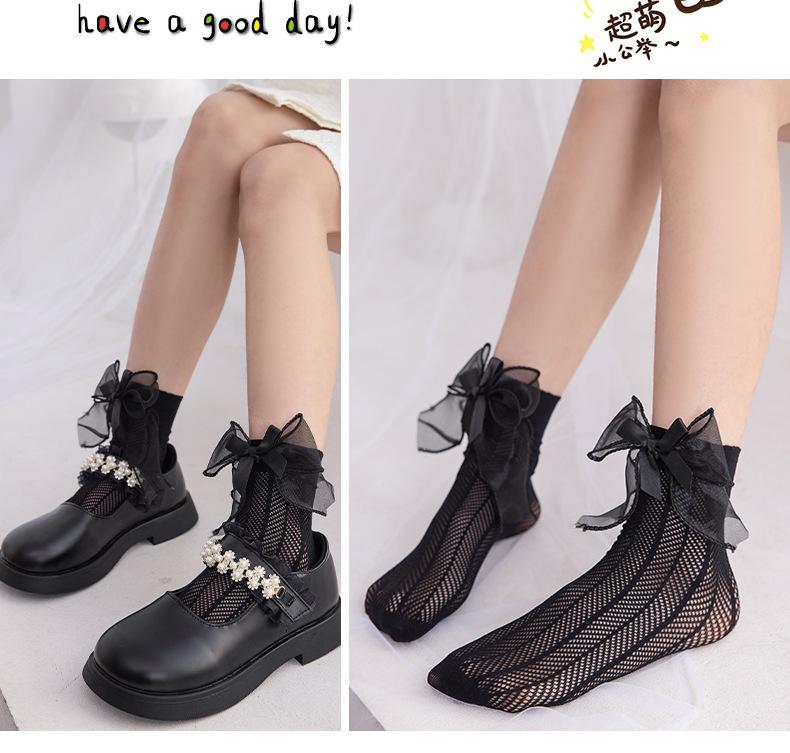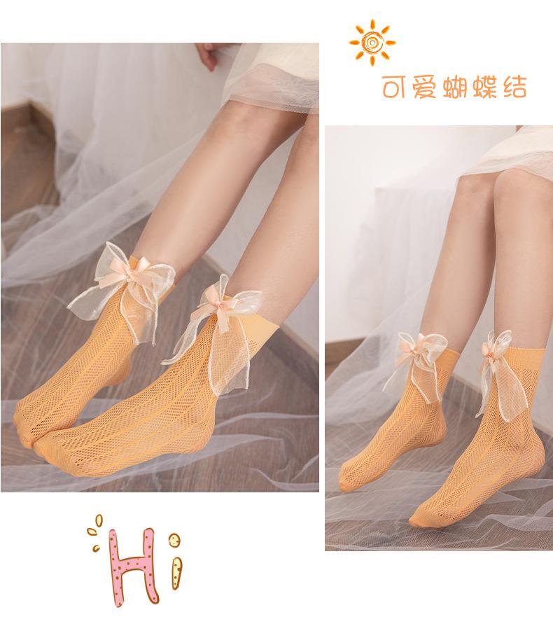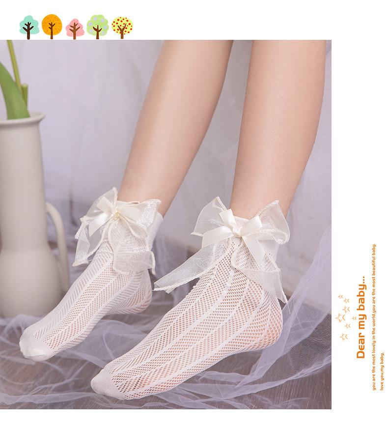 Meias para meninas meias finas de verão para crianças em malha respirável arco de verão primavera e verão dupla rede meias princesa