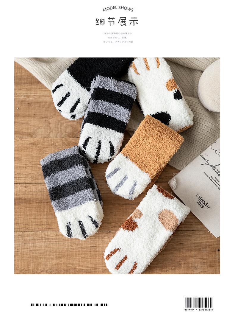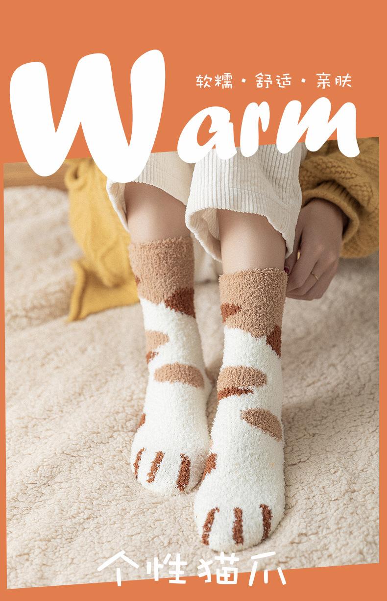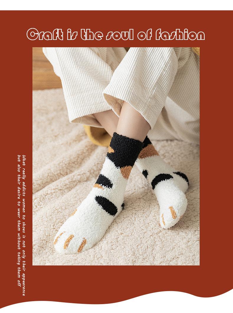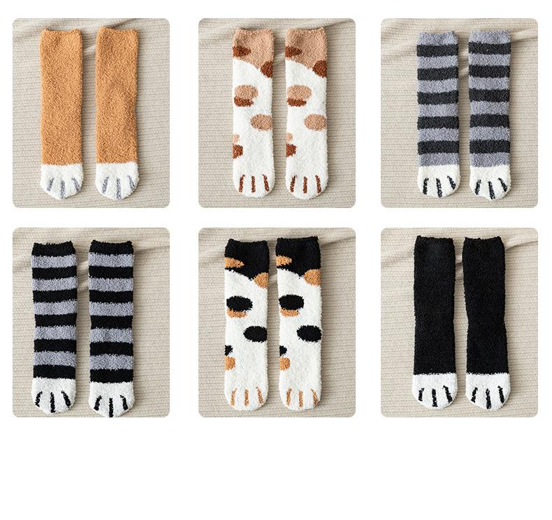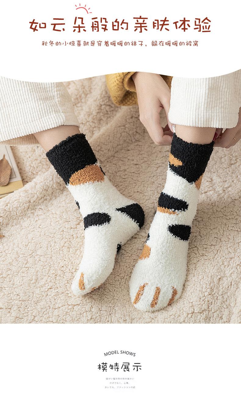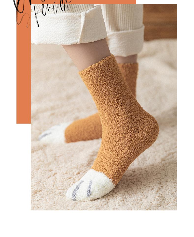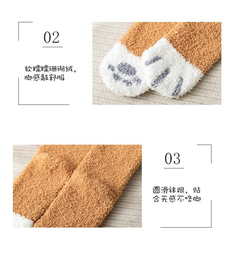 Meias femininas de lã coral, meias médias, garra de gato, cabelo quente, outono e inverno, espessadas, forradas de lã, meias de chão para dormir, tubo longo, meias lua