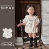 Botão oculto na virilha, conveniente para o bebê vestir e trocar fraldas~