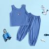 Conjunto de coletes infantis Verão Fino Meninos Sem Mangas Cropped Bloomers Bebê Meninas Sling Base Roupas para Casa