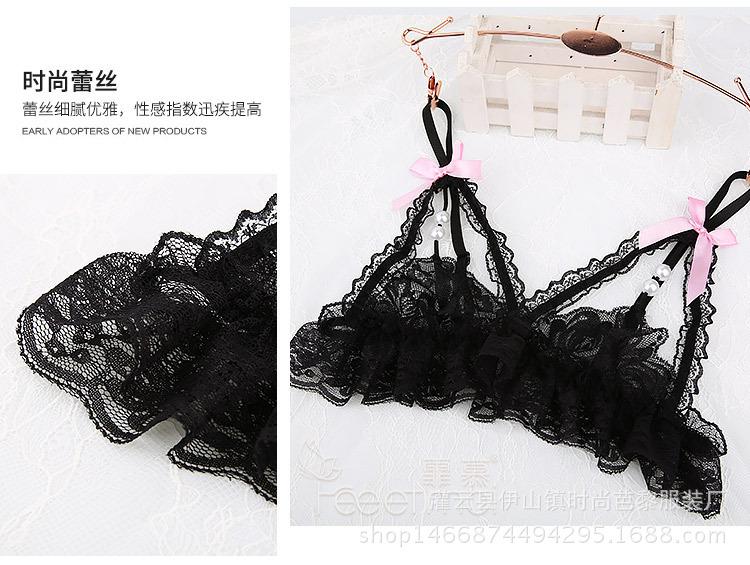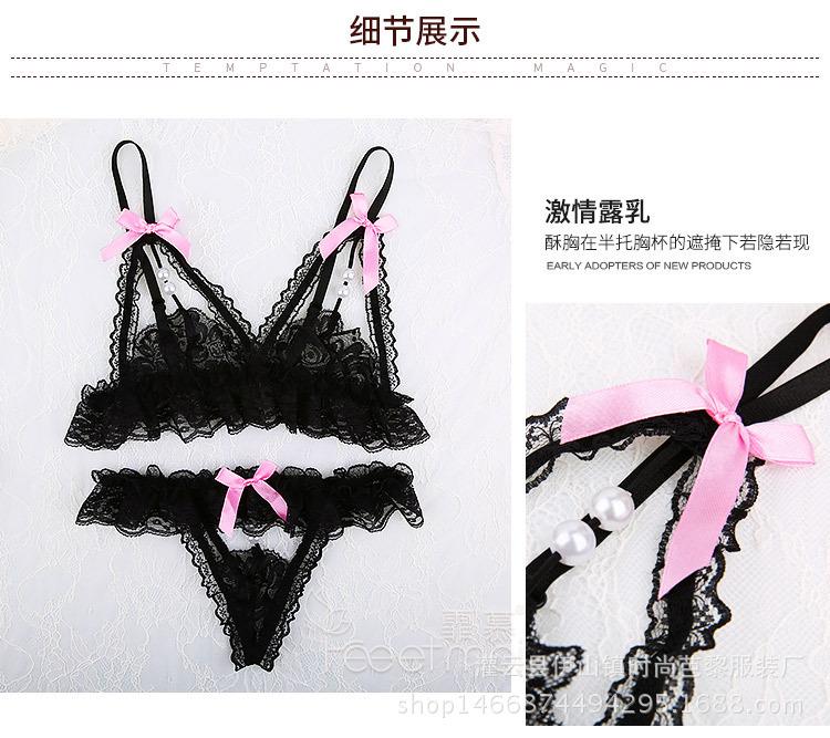 Sutiã de Renda Sexy Três Pontos Sem Virilha Biquíni Expondo os Seios Calcinha de Pérolas Conjunto de Lingerie Sexy Dropshipping