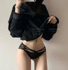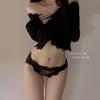 Cinta preta malha confortável respirável cintura baixa cuecas puro desejo sexy sem costura rendas roupa interior da menina tentação