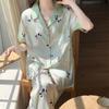Agite o mesmo pequeno cão de leite bonito padrão verão manga curta shorts lapela pequena duas peças terno casa roupas atacado