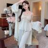 Qiruo de alta qualidade sexy de seda de gelo com almofada no peito empurrar para cima sling top calças exterior robe das mulheres de três peças terno homewear