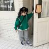 Molho Xuanxuan suéter infantil de manga de cor contrastante roupas infantis 2024 suéter com capuz de camiseta de manga comprida de duas peças falsas