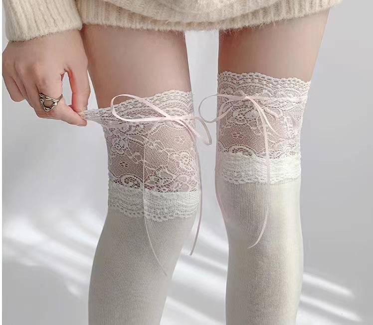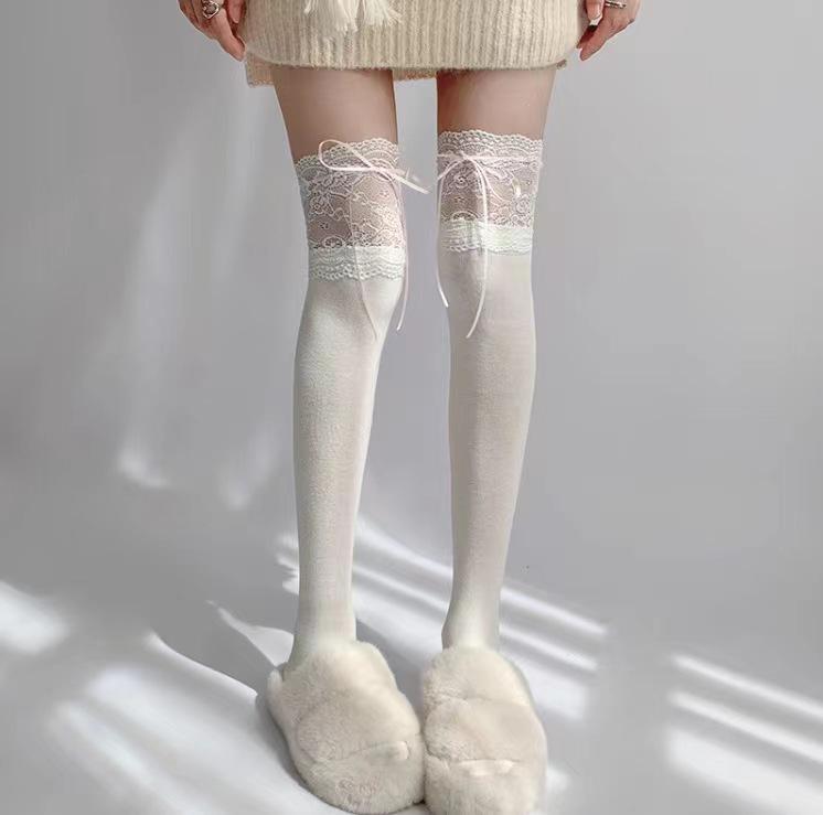 Meias brancas acima do joelho Meias femininas Bow Lolita Meias Jk Meias Lace Lace Ballet Style Botas de menina Meias