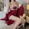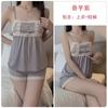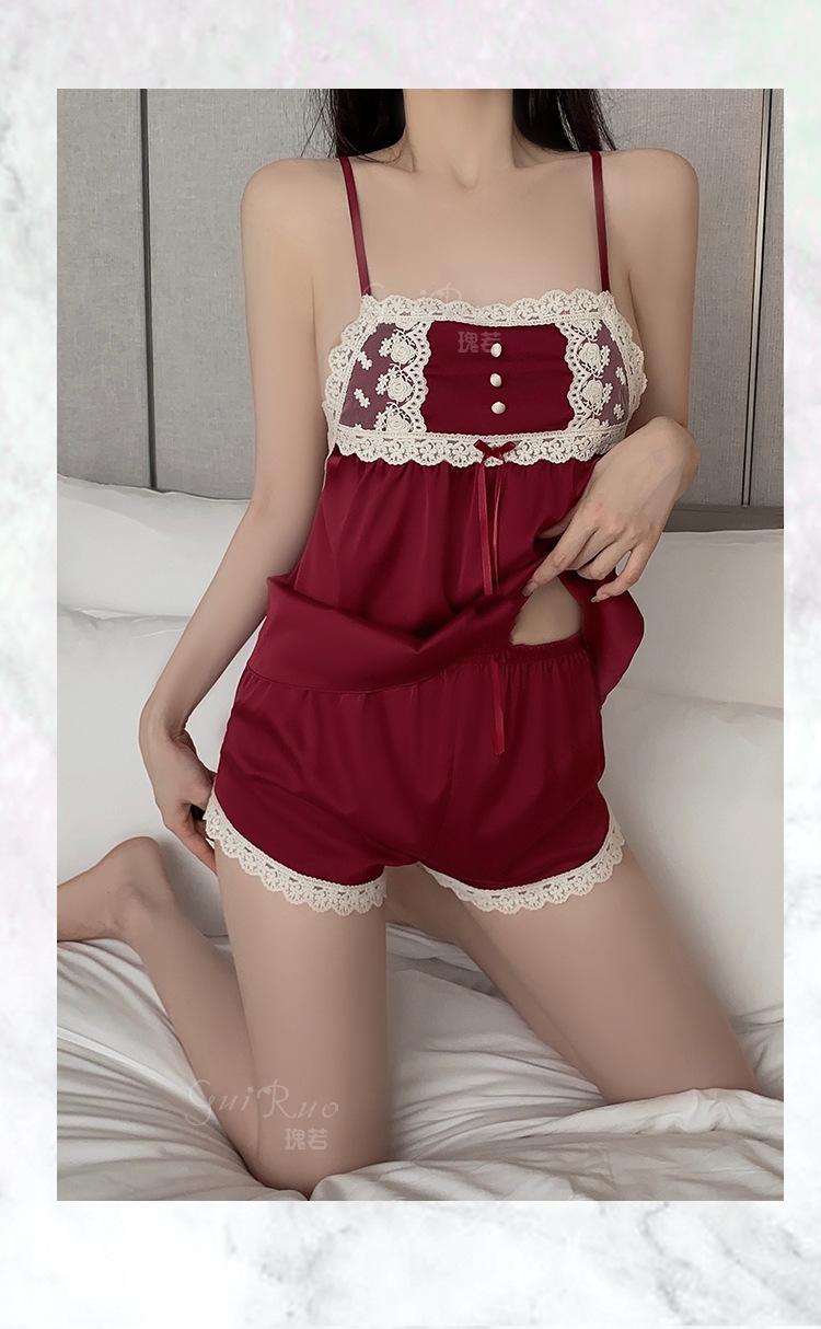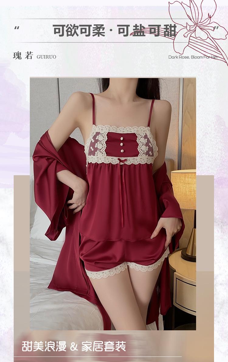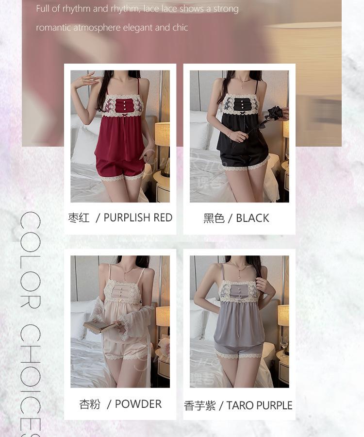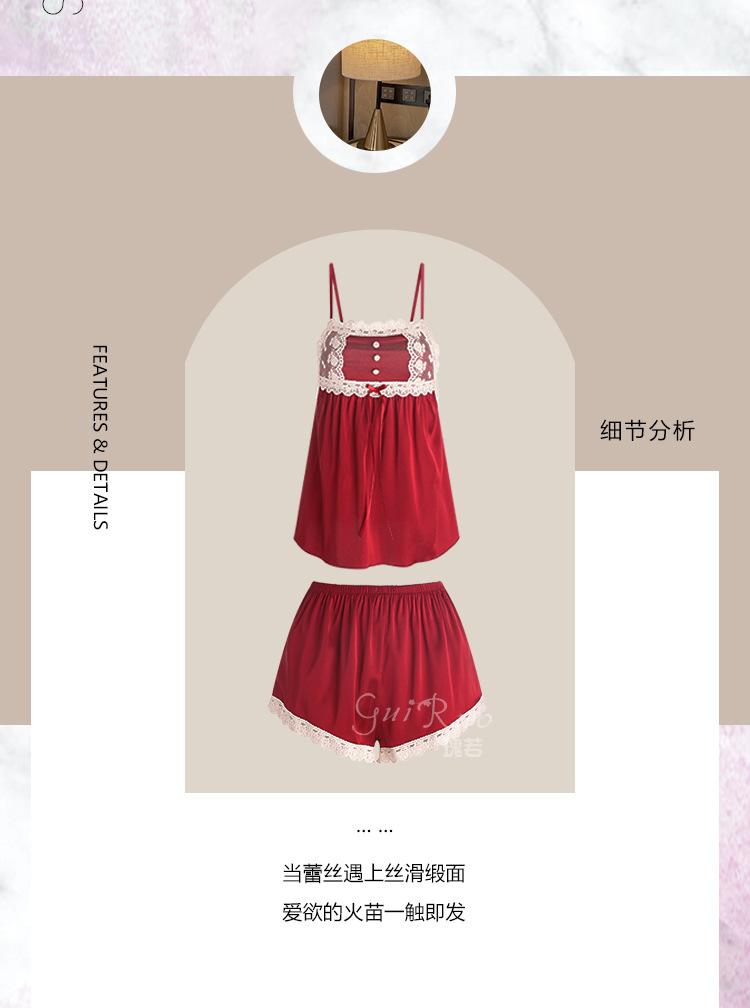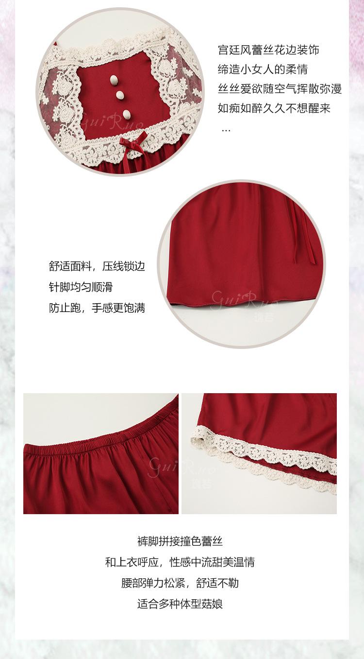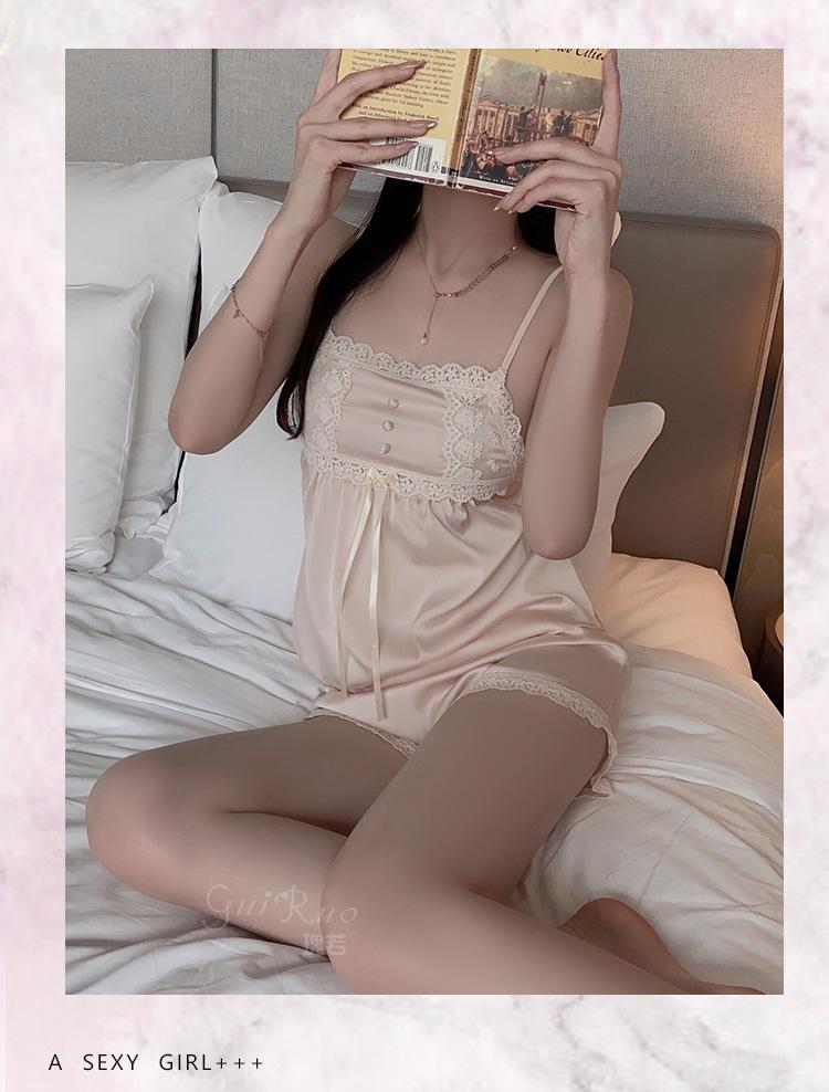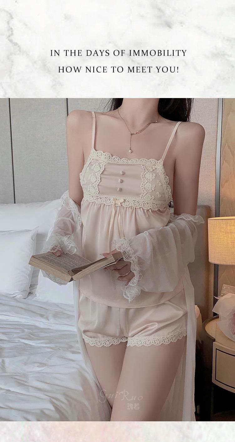 Guiruo Sexy Lace Costura Gelo Seda Puro Estilingue Pijamas Fino Confortável Shorts Robe Casa 3486 Terno