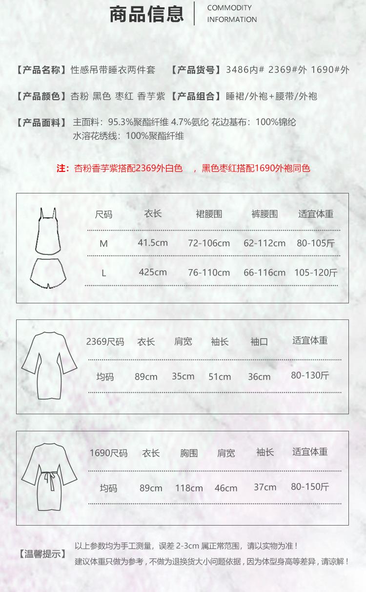 1690 black (robe belt), 3486 Taro Purple (Top Shorts), 2369 White (Robe), 3486 apricot powder (jacket shorts), 2369 (White Robe)