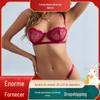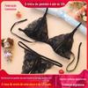 Lingerie sexy feminina europeia e americana perspectiva de três pontos conjunto de renda aberta tanga sutiã cueca