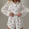 Conjunto de Pijama Curto de Manga Longa com Estampa de Coração em Algodão Puro, Solto, Macio, Confortável, Respirável, para Primavera/Verão 2026, Homewear para Mulheres