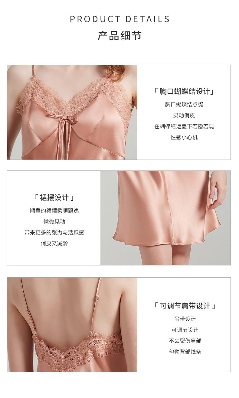 Borboleta bordado 19 m de seda suspender saia laço costura laço arco camisola sexy backless amoreira seda desgaste doméstico
