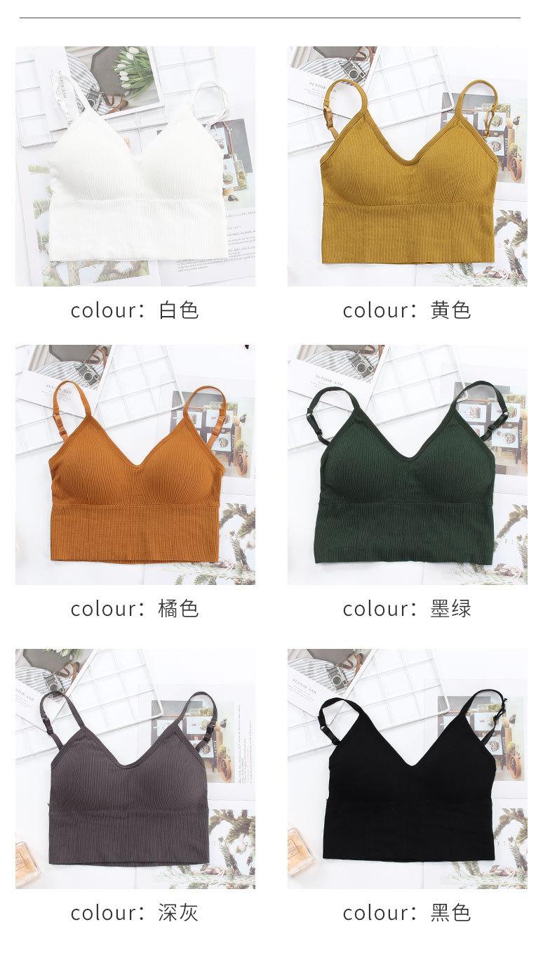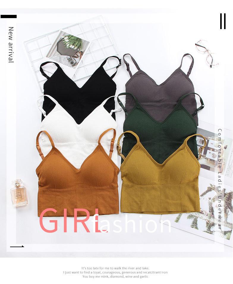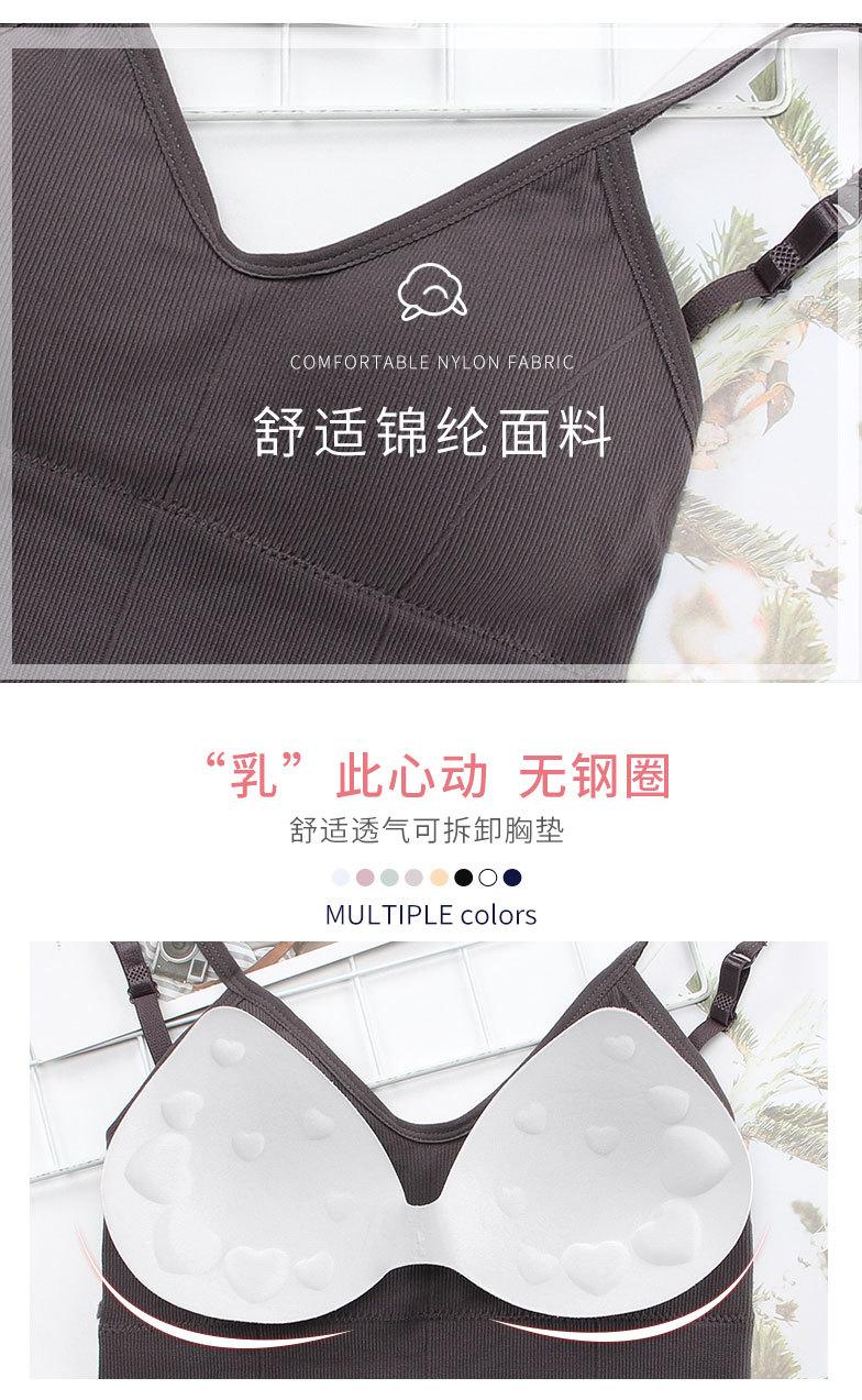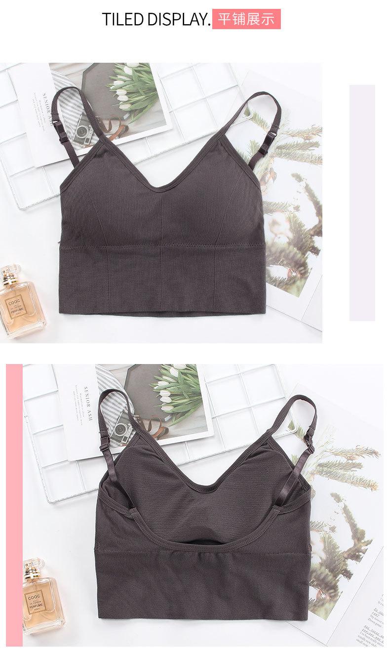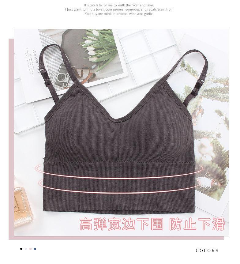 Novo estilo de alças finas com rosca de uma linha, top de tubo torácico com almofadas no peito para evitar a exposição, sutiã esportivo para mulheres