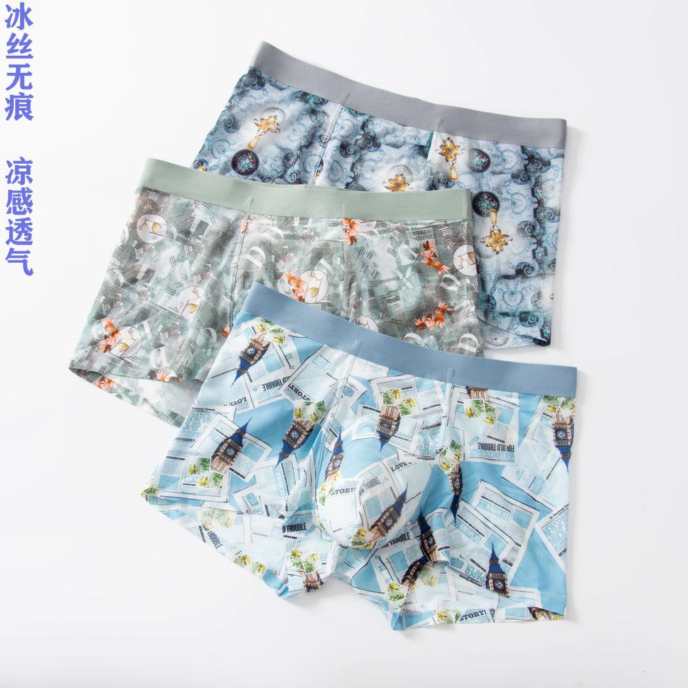 Compre Cueca Fina Sem Costura de Seda Gelo Masculina Tamanho Grande Estampada Cintura Média Tamanho Grande Plus Fat Respirável Cueca de Menino no atacado no Joom.pro