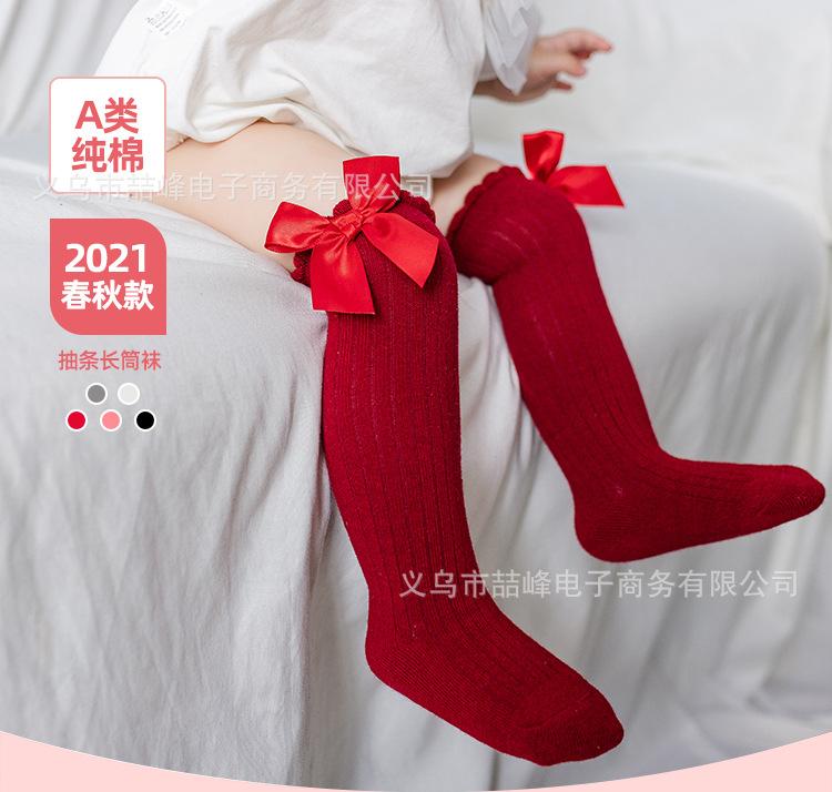 Meias de Bebê Espanholas Até o Joelho com Laço Grande Vestido Menina Estudante Princesa Meias Rosa Boca Larga Fabricante