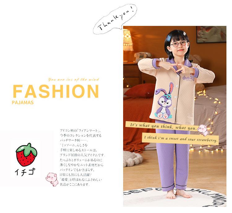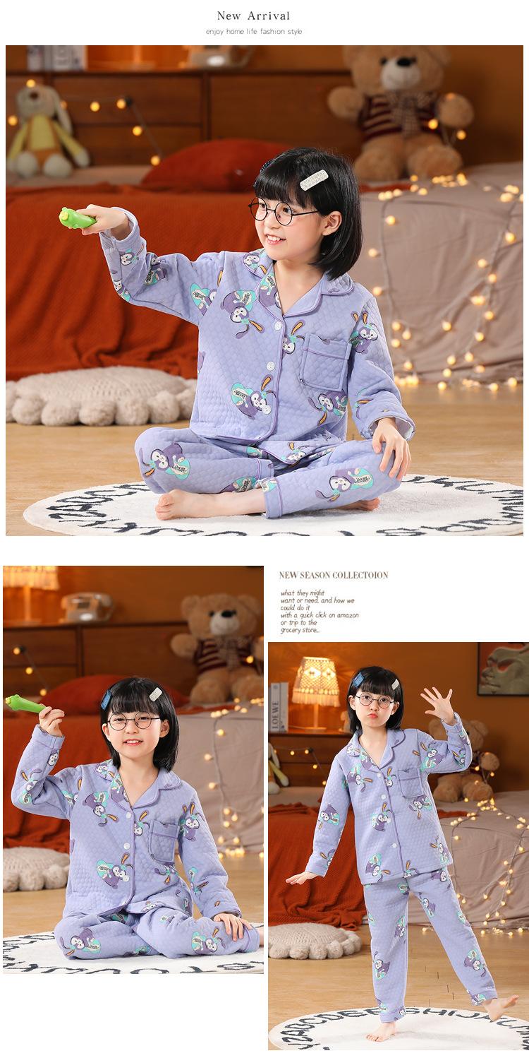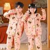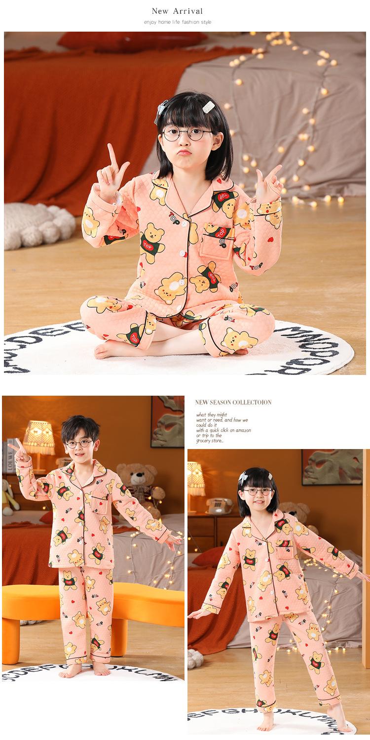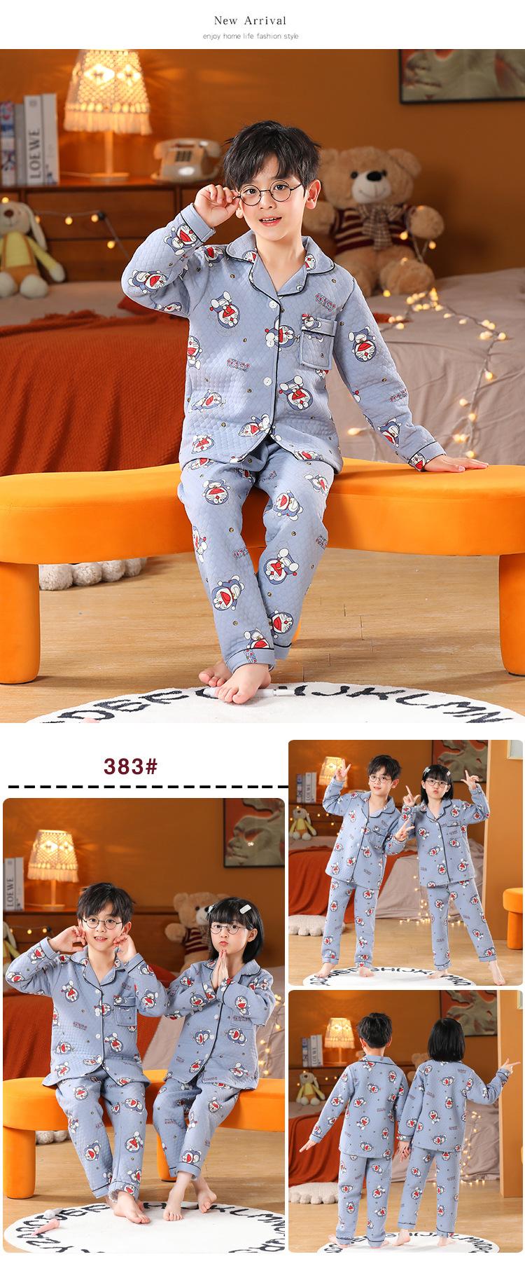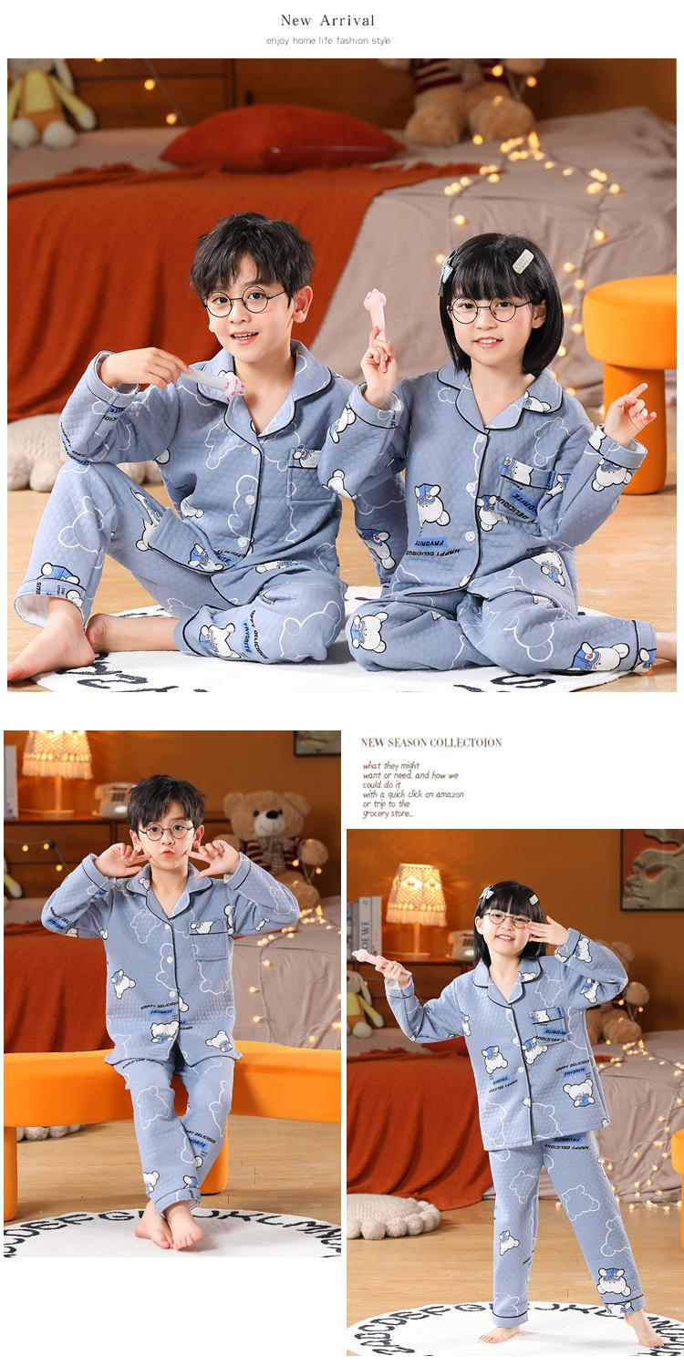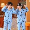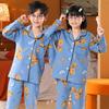 Outono e inverno algodão ar pijamas infantis cardigan lapela bonito desenho animado meninos e meninas sanduíche roupas de casa terno de duas peças
