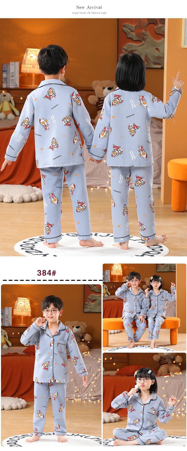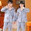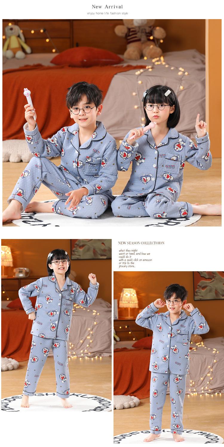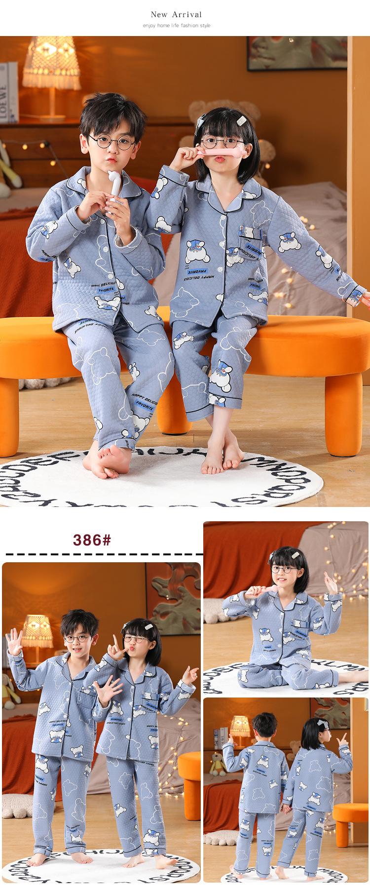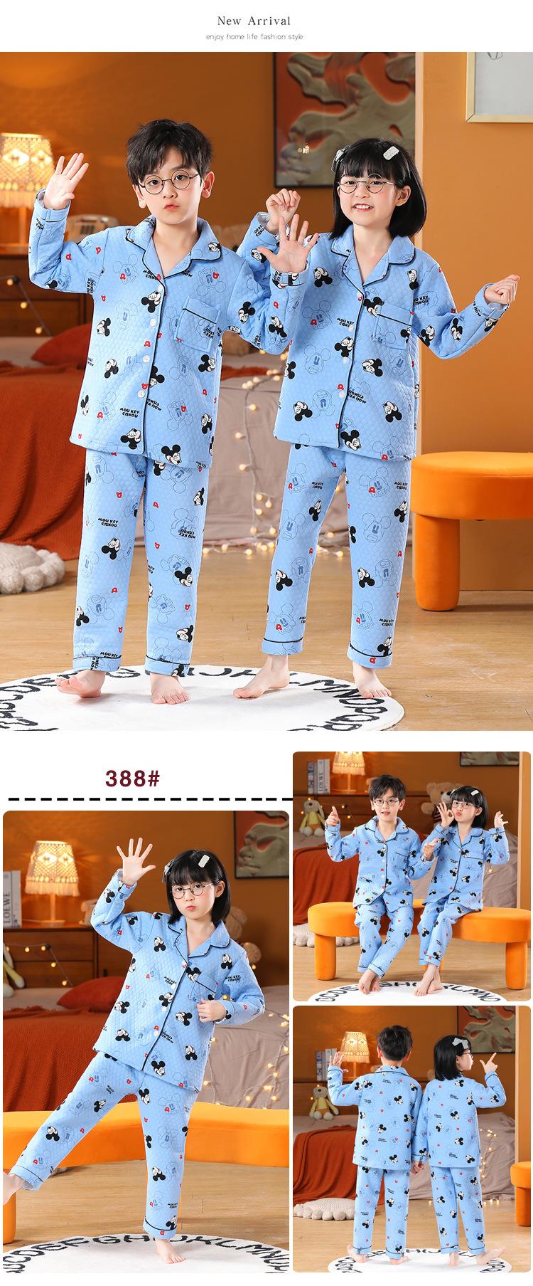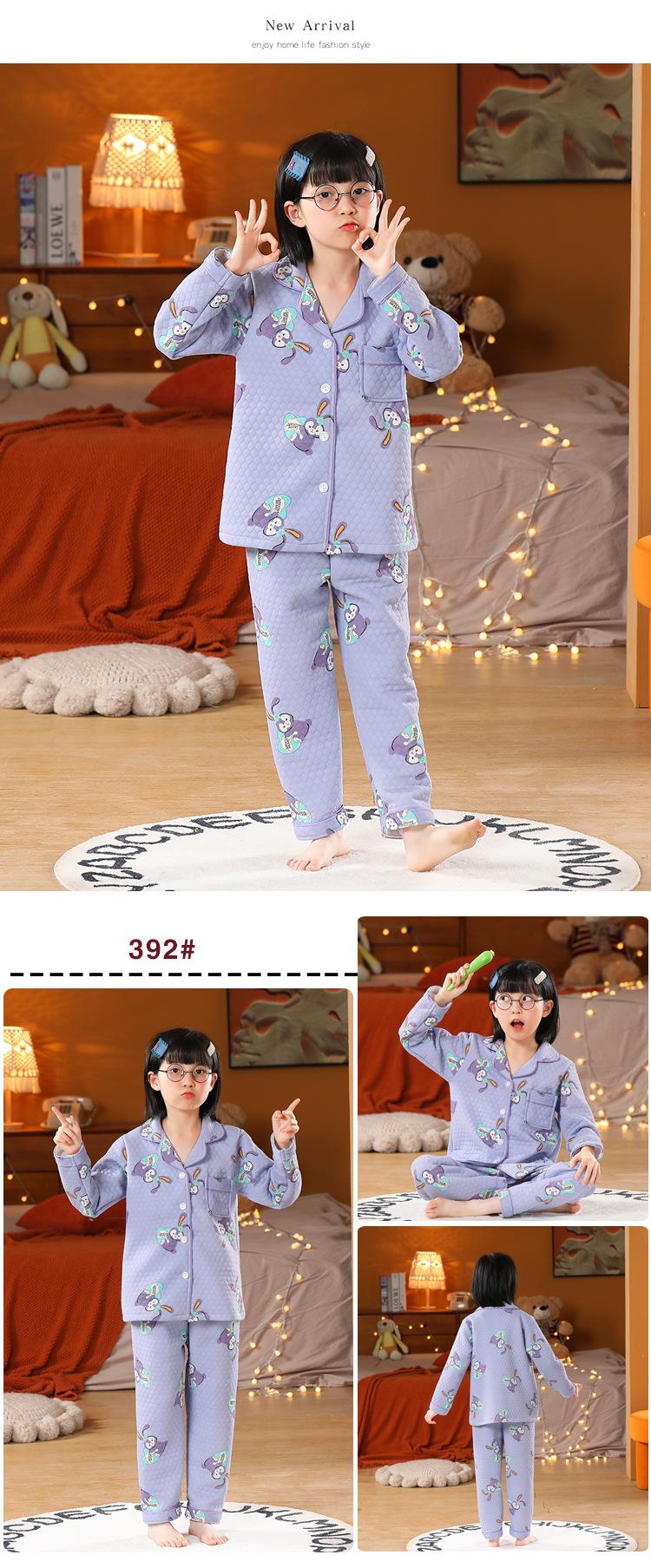 Outono e inverno algodão ar pijamas infantis cardigan lapela bonito desenho animado meninos e meninas sanduíche roupas de casa terno de duas peças