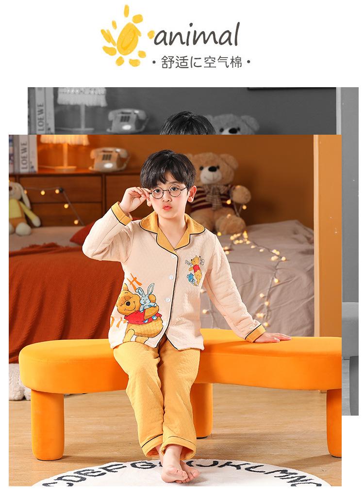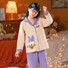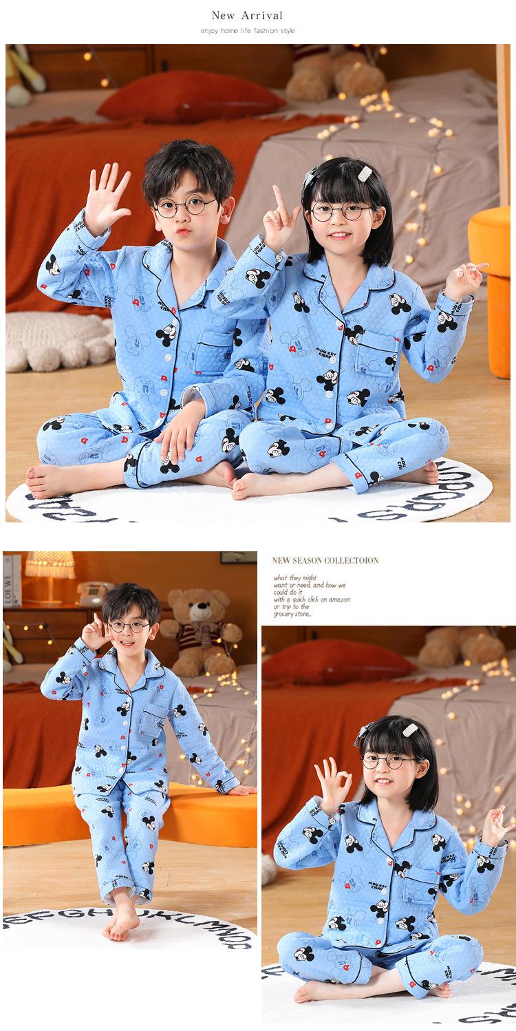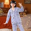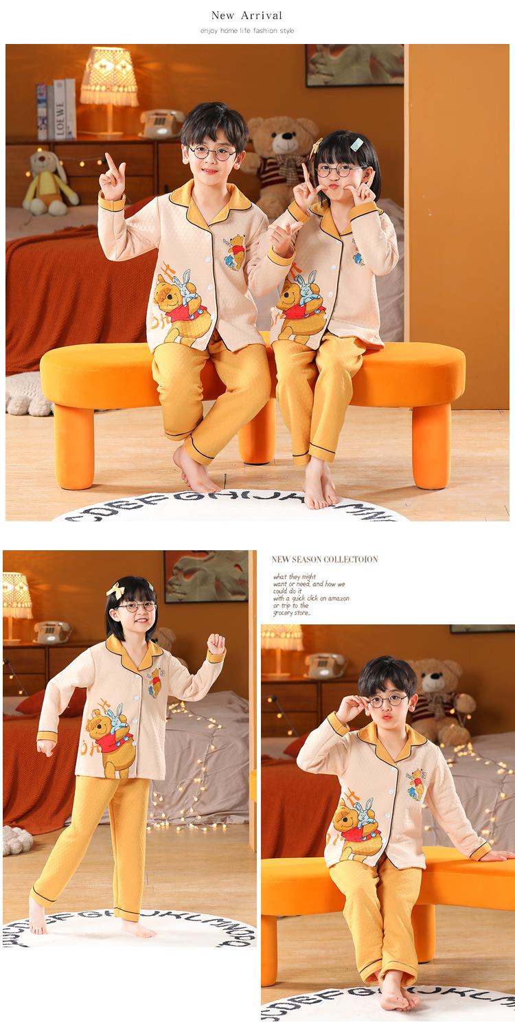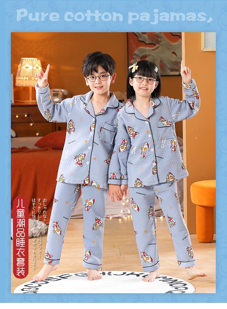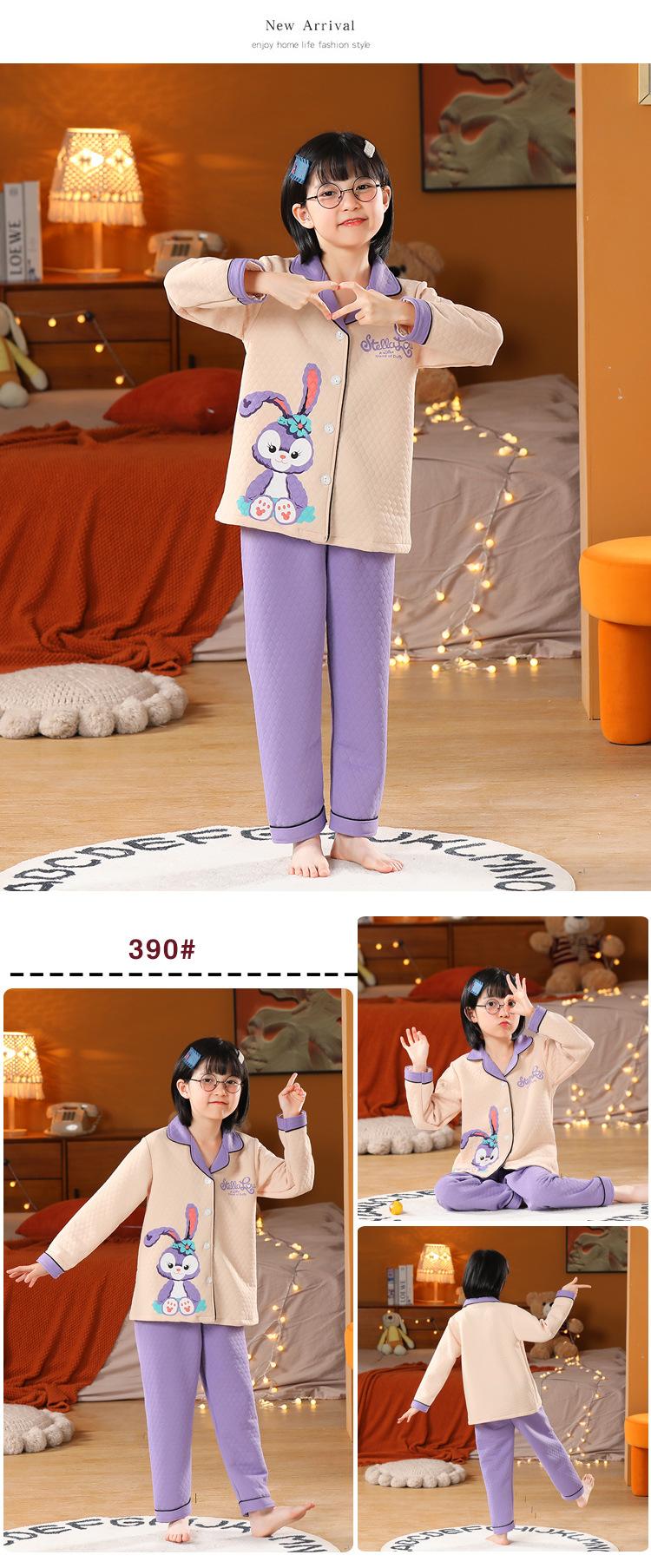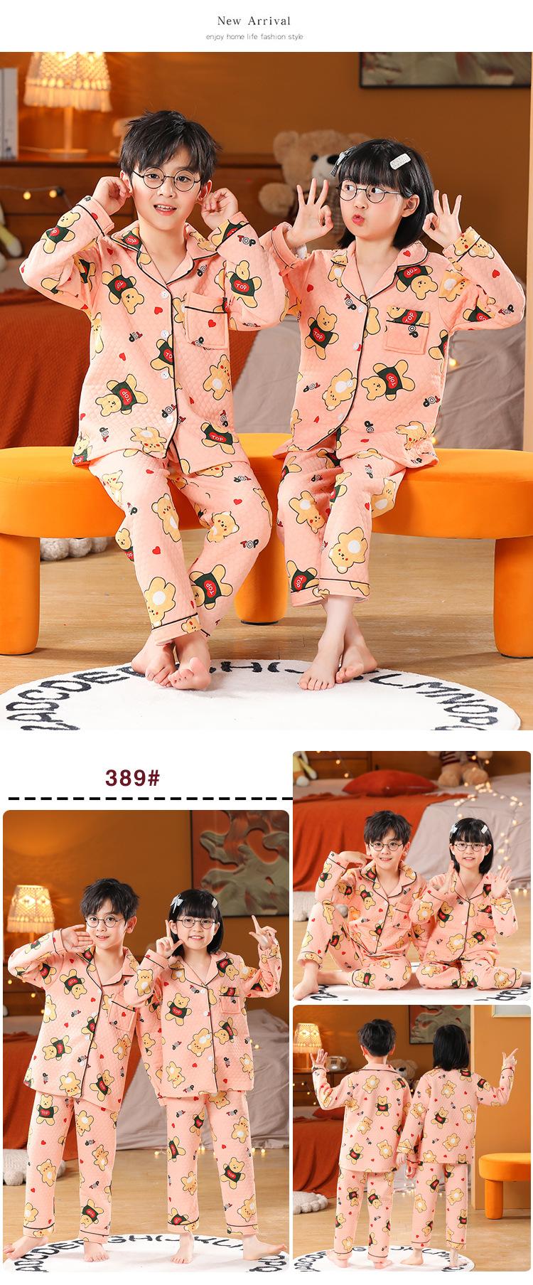 Outono e inverno algodão ar pijamas infantis cardigan lapela bonito desenho animado meninos e meninas sanduíche roupas de casa terno de duas peças