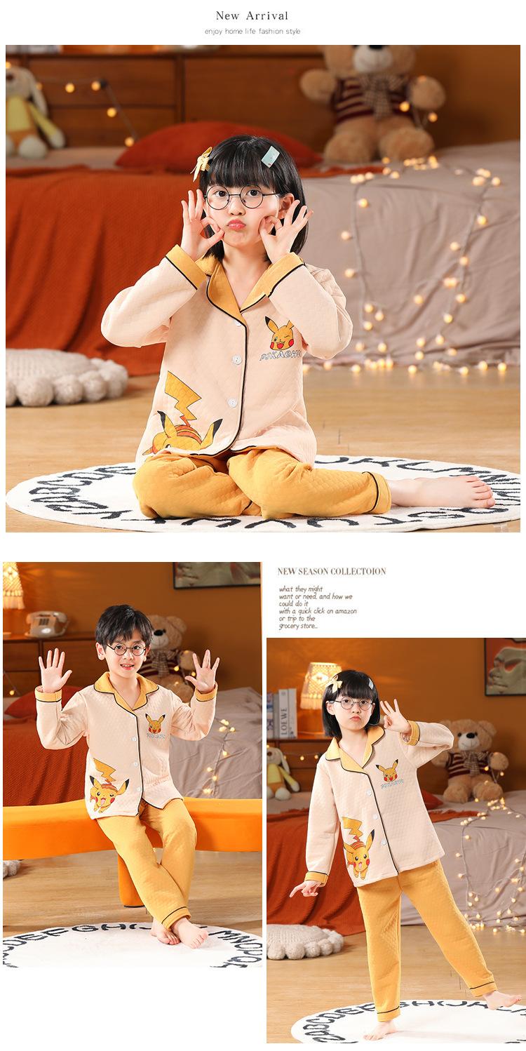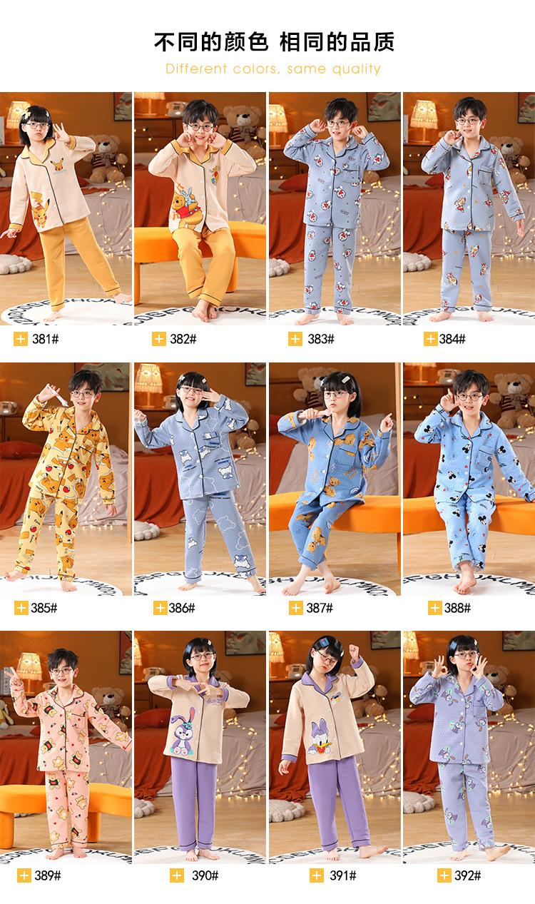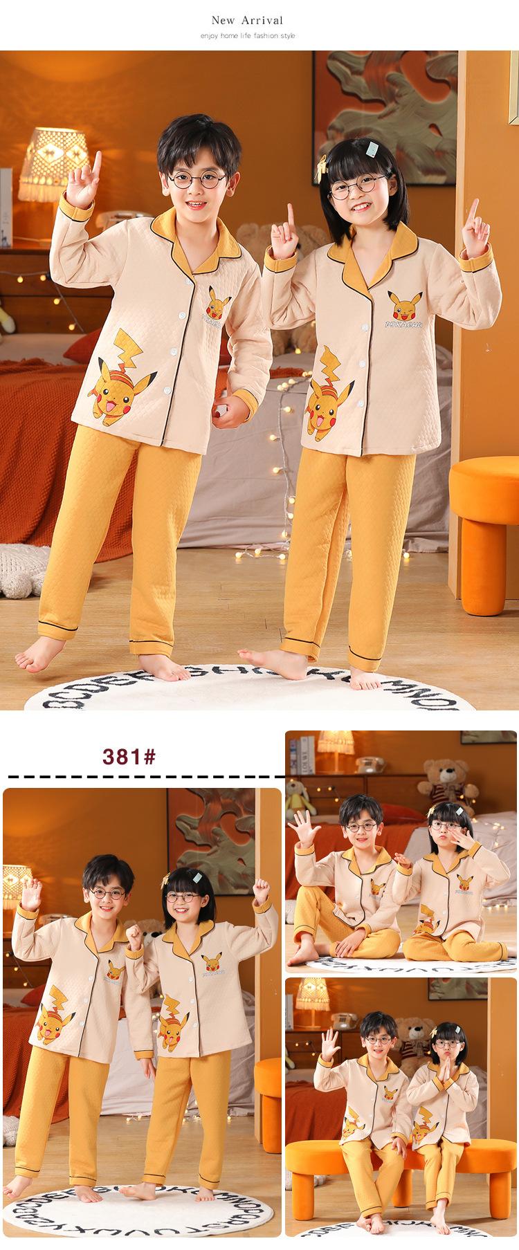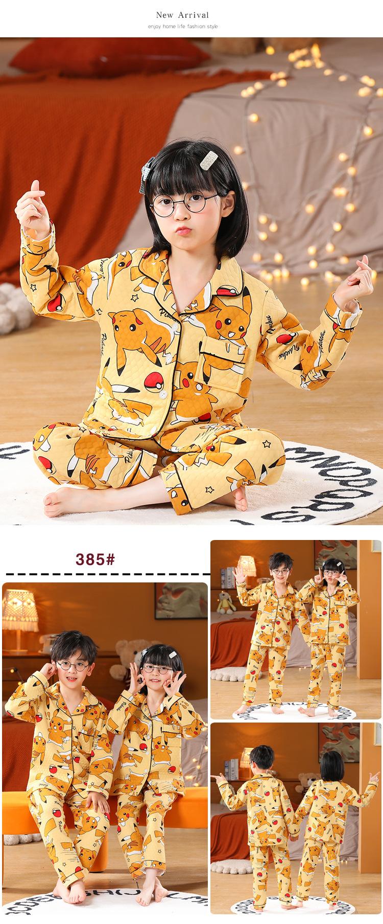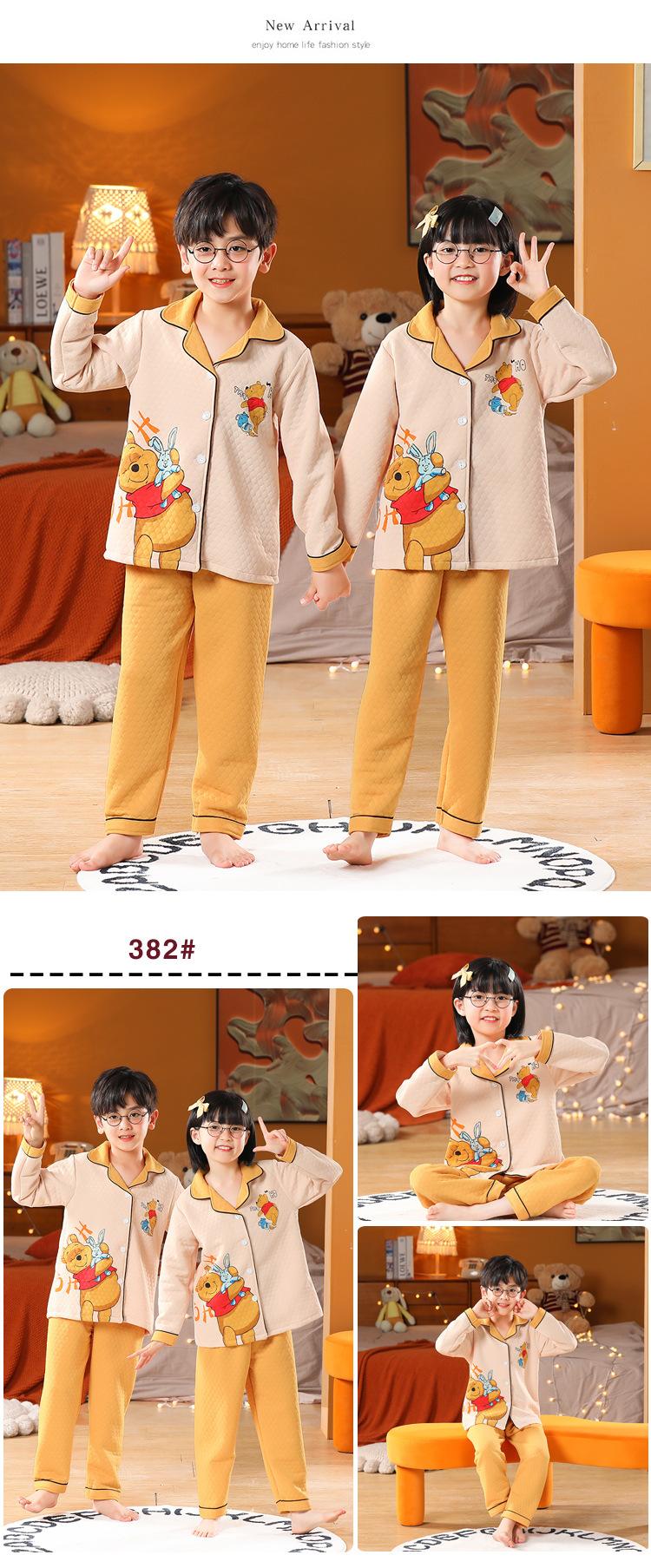Outono e inverno algodão ar pijamas infantis cardigan lapela bonito desenho animado meninos e meninas sanduíche roupas de casa terno de duas peças