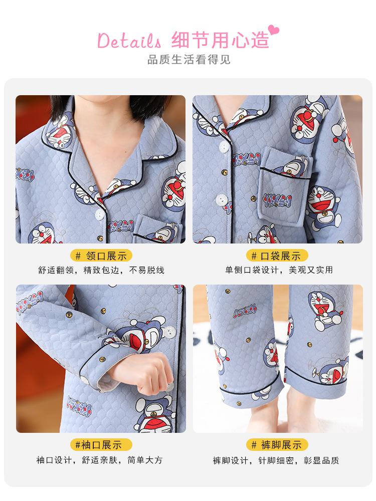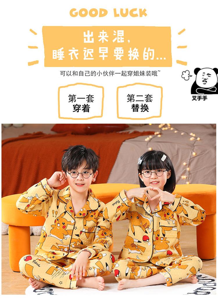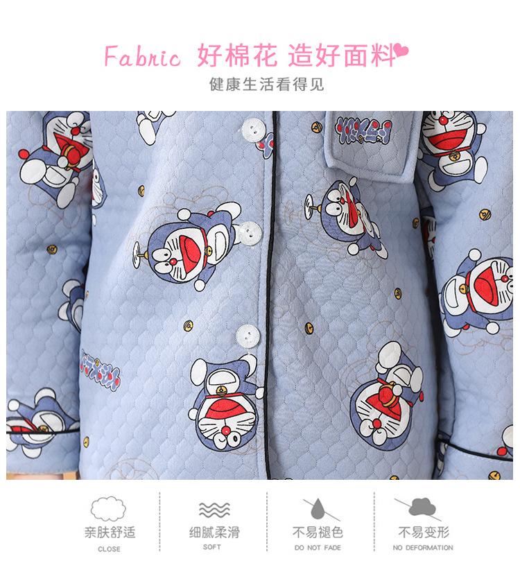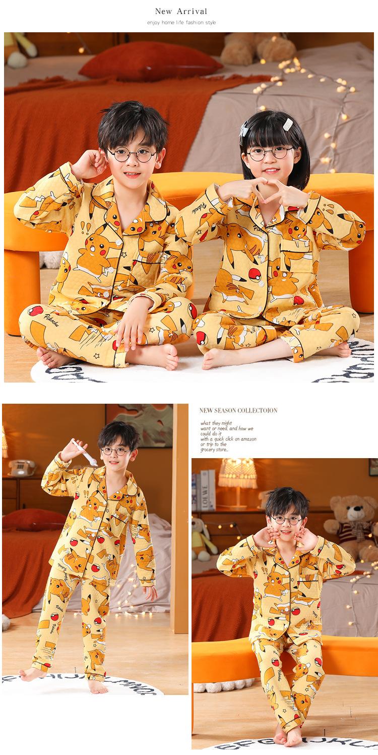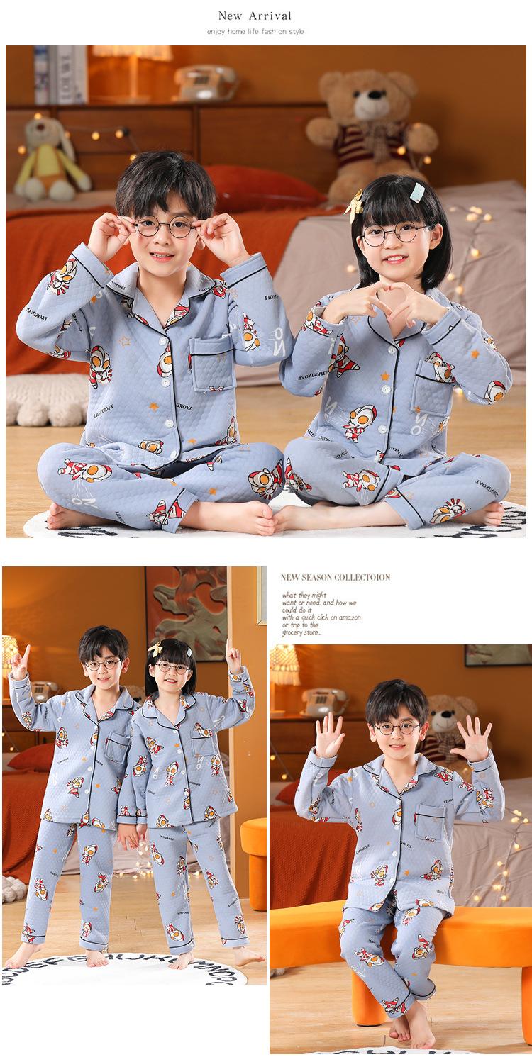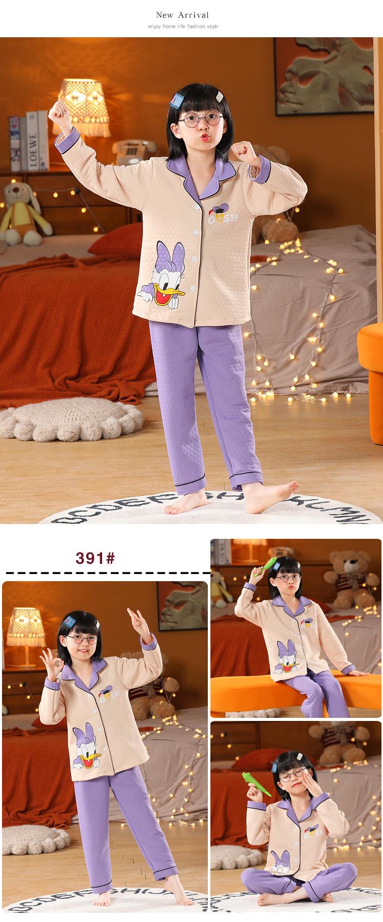 Outono e inverno algodão ar pijamas infantis cardigan lapela bonito desenho animado meninos e meninas sanduíche roupas de casa terno de duas peças