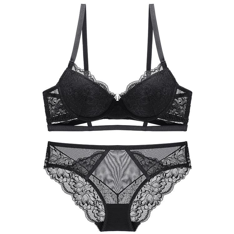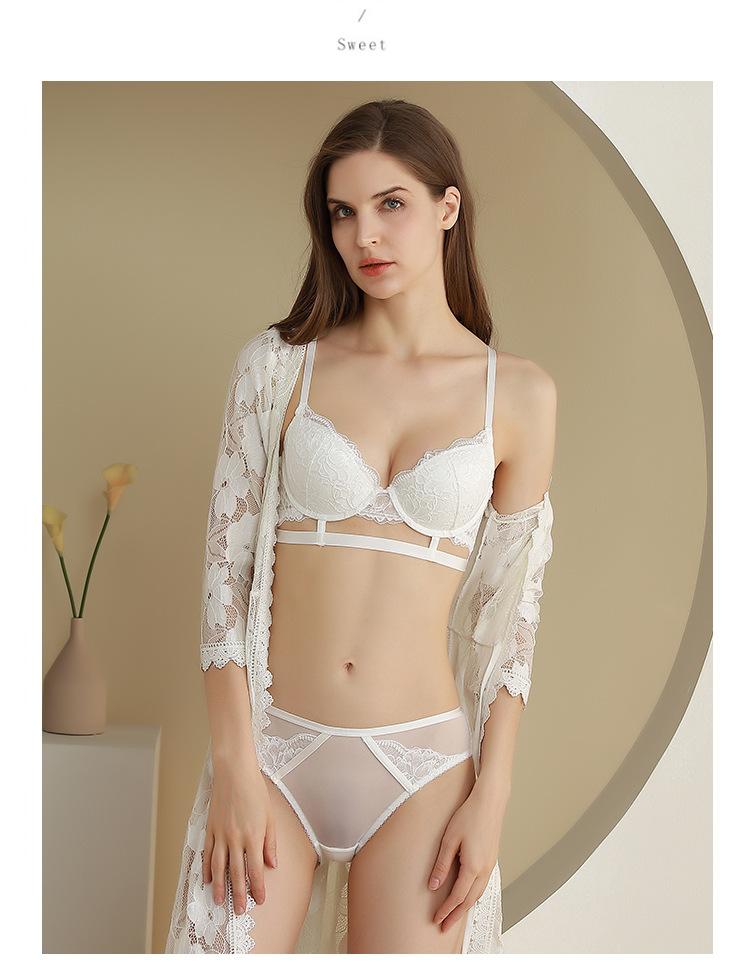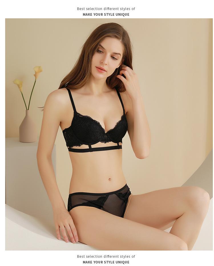 Conjunto de sutiã push-up feminino com renda ultrafina, roupa íntima bonita, transparente, confortável e respirável