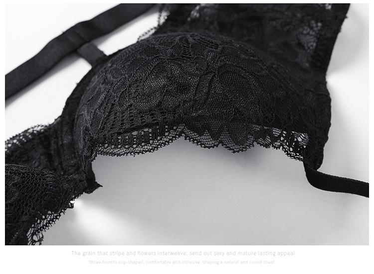 Conjunto de sutiã de renda sexy ultrafino transparente sem almofada 1/2 meia xícara