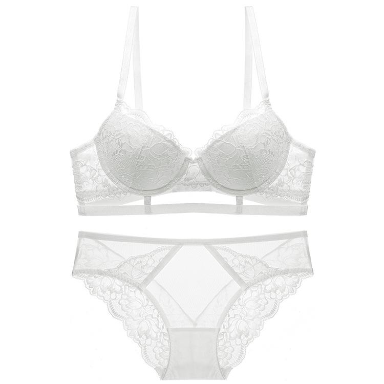 Sexy renda ultra-fina sem esponja sutiã transparente roupa interior feminina seios grandes conjunto de sutiã pequeno