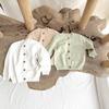 Estilo coreano em malha cardigan de cor sólida casaco oco estilo ocidental versátil moda primavera e outono roupas infantis infantis