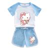 Compre Hello Kitty terno de manga curta infantil dos desenhos animados 2023 Verão meninas novos esportes de lazer conjunto de duas peças uma geração de cabelo no atacado no Joom.pro