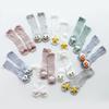 Meias de bebê de cano longo acima do joelho de malha de verão, meias de algodão penteado, boneca de desenho animado, boca solta, meias de bebê recém-nascido, meias anti-mosquito