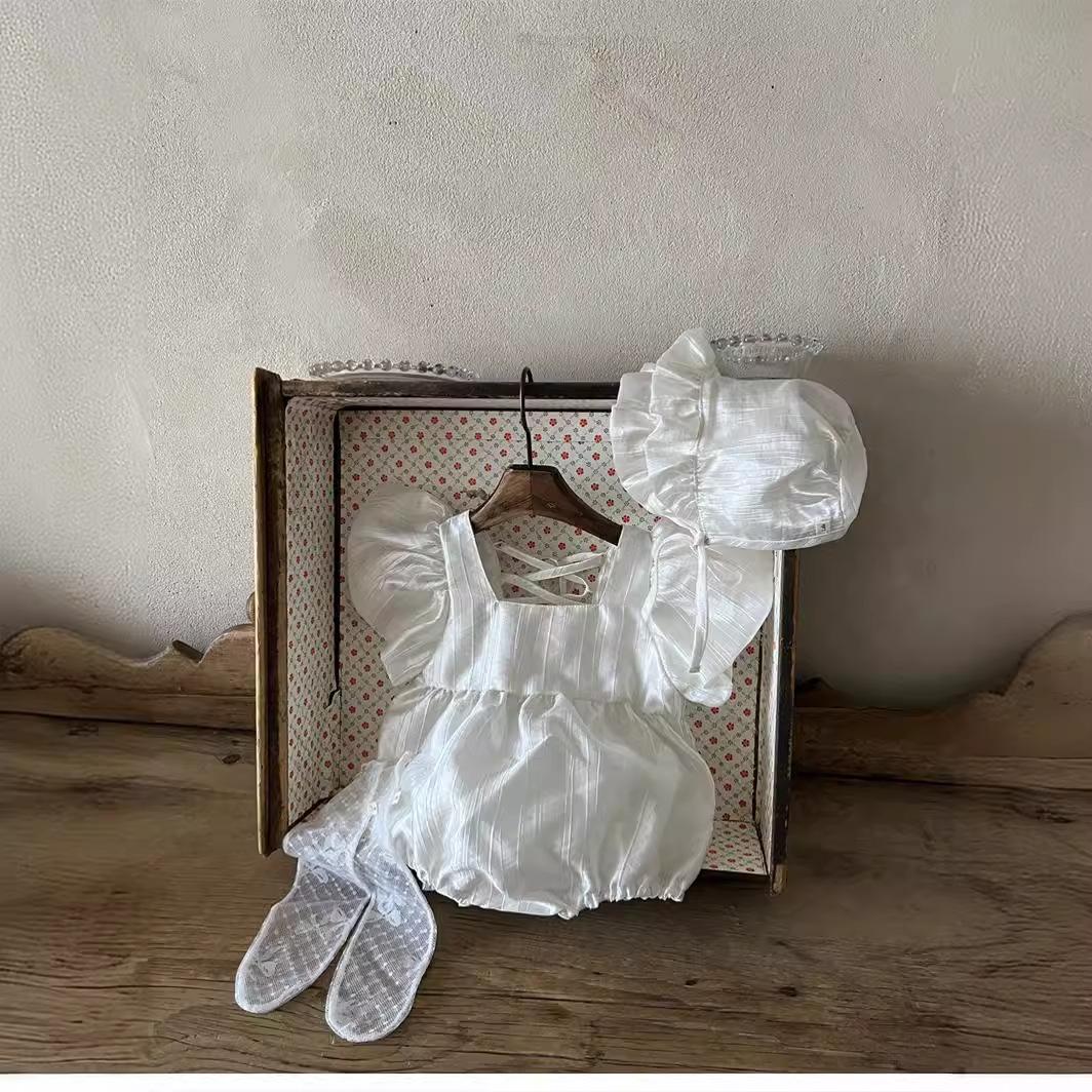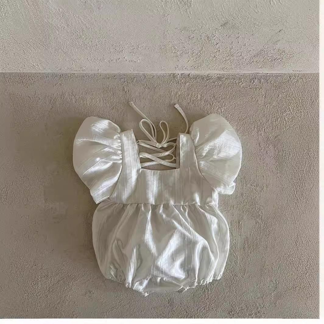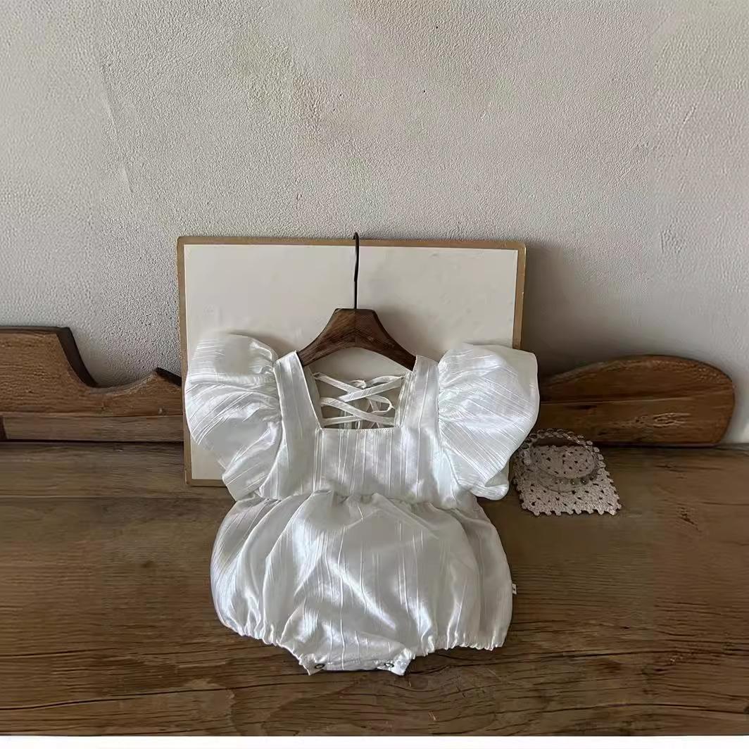 Roupa de Passeio para Bebê Verão Roupa de Bebê Verão 2025 Estilo Coreano Roupa Infantil Macacão Manga Bufante para Meninas