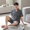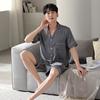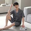 Han Yatong Cetim Gelo Seda Shorts Masculinos de Manga Curta Primavera e Verão Cor Sólida Terno de Casa Outono Pijama Novo Cinza Escuro