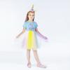 2021 Unicórnio Verão Verão Vestido Infantil de manga curta Rainbow Mesh Princess Dress Estilo Coreano Moda Infantil Feminina Saia Pequena e Média
