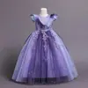 Europeu e americano meninas vestido longo saia médio e grande crianças de manga curta malha desempenho anfitrião vestido de princesa cross-border uma peça nova