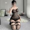 Nova lingerie sexy sexy malha flash prata plissada slim camisola paixão oca-out perspectiva pijama privado