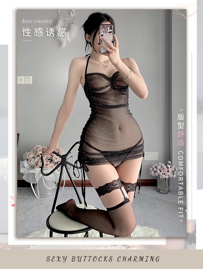 Compre Nova lingerie sexy sexy malha flash prata plissada slim camisola paixão oca-out perspectiva pijama privado no atacado no Joom.pro