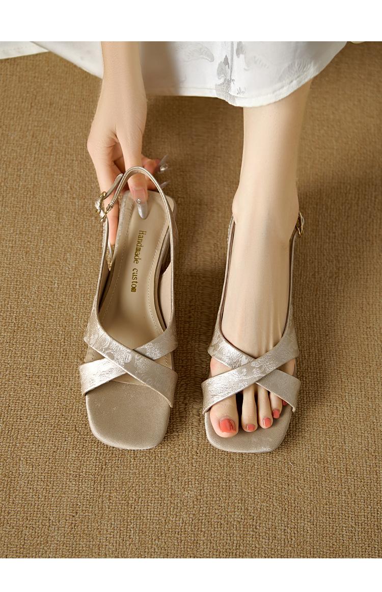 Sandálias romanas de tira única cruzadas femininas 2024 novos sapatos femininos de verão novos sapatos de estilo chinês estilo nacional sapatos baixos