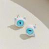 Brincos de pedra olho de gato com gota de óleo de desenho animado de agulha de prata Brincos de temperamento pequeno requintado Mini brincos fofos de gato de um olho