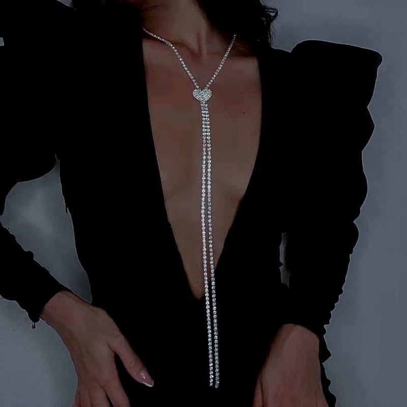 Moda Europeia e Americana Amor Super Flash Full Diamond Tassel Clavícula Cadeia Sexy Light Luxury Avançado Exagerado Super Longo Colar Nova Moda