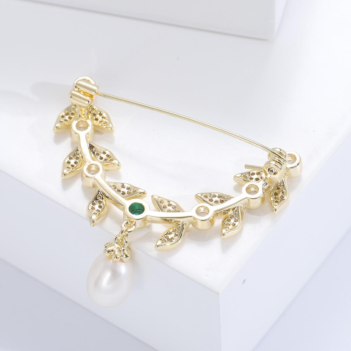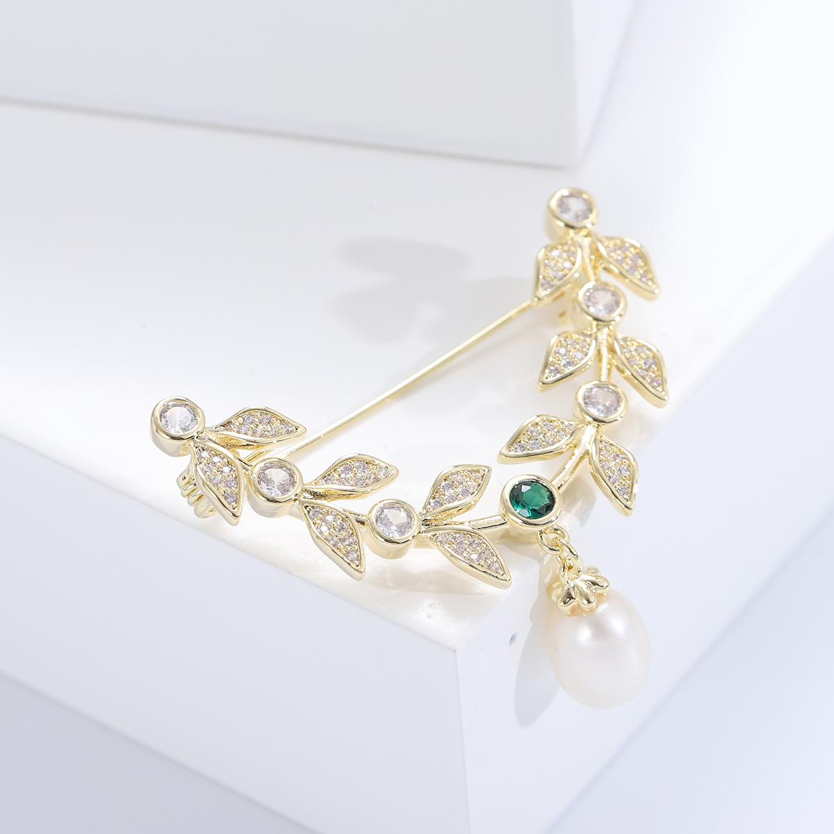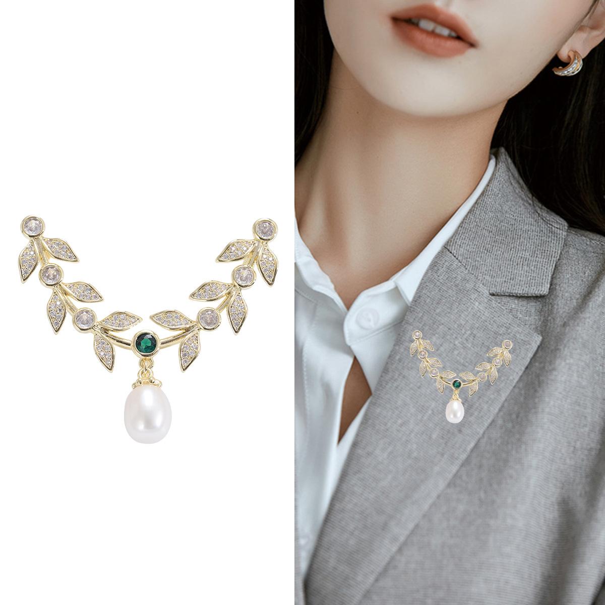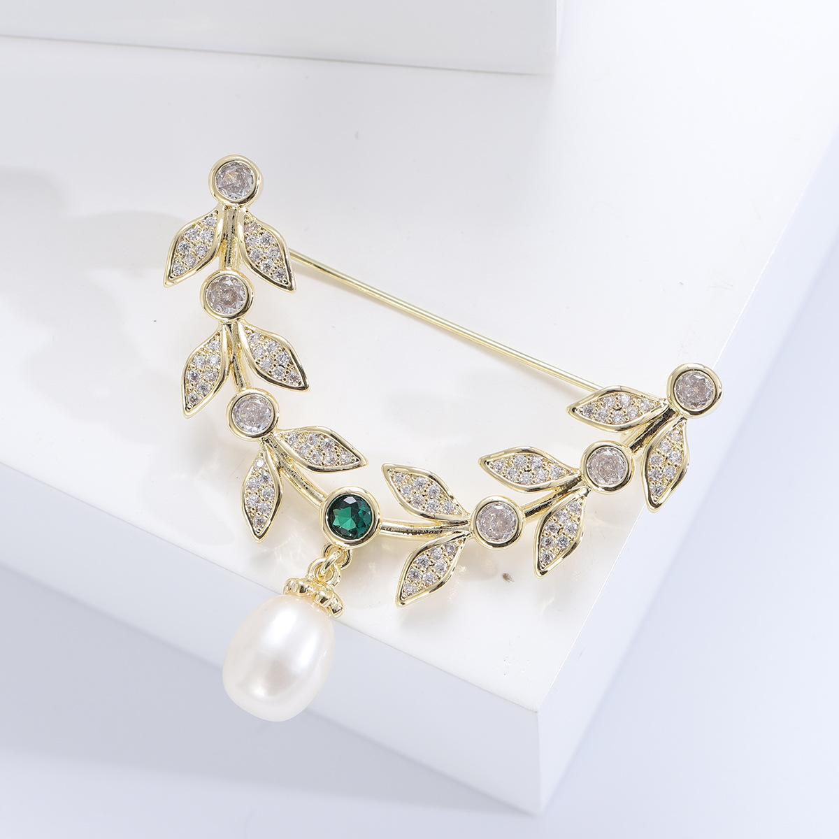 Compre Broche de folha de zircão elegante estilo coreano Pino de estilo de folha de salgueiro de alta qualidade Acessórios de casaco de terno feminino elegante de luxo no atacado no Joom.pro