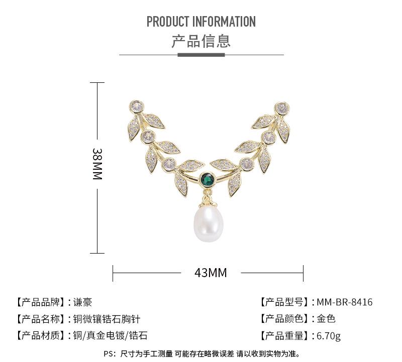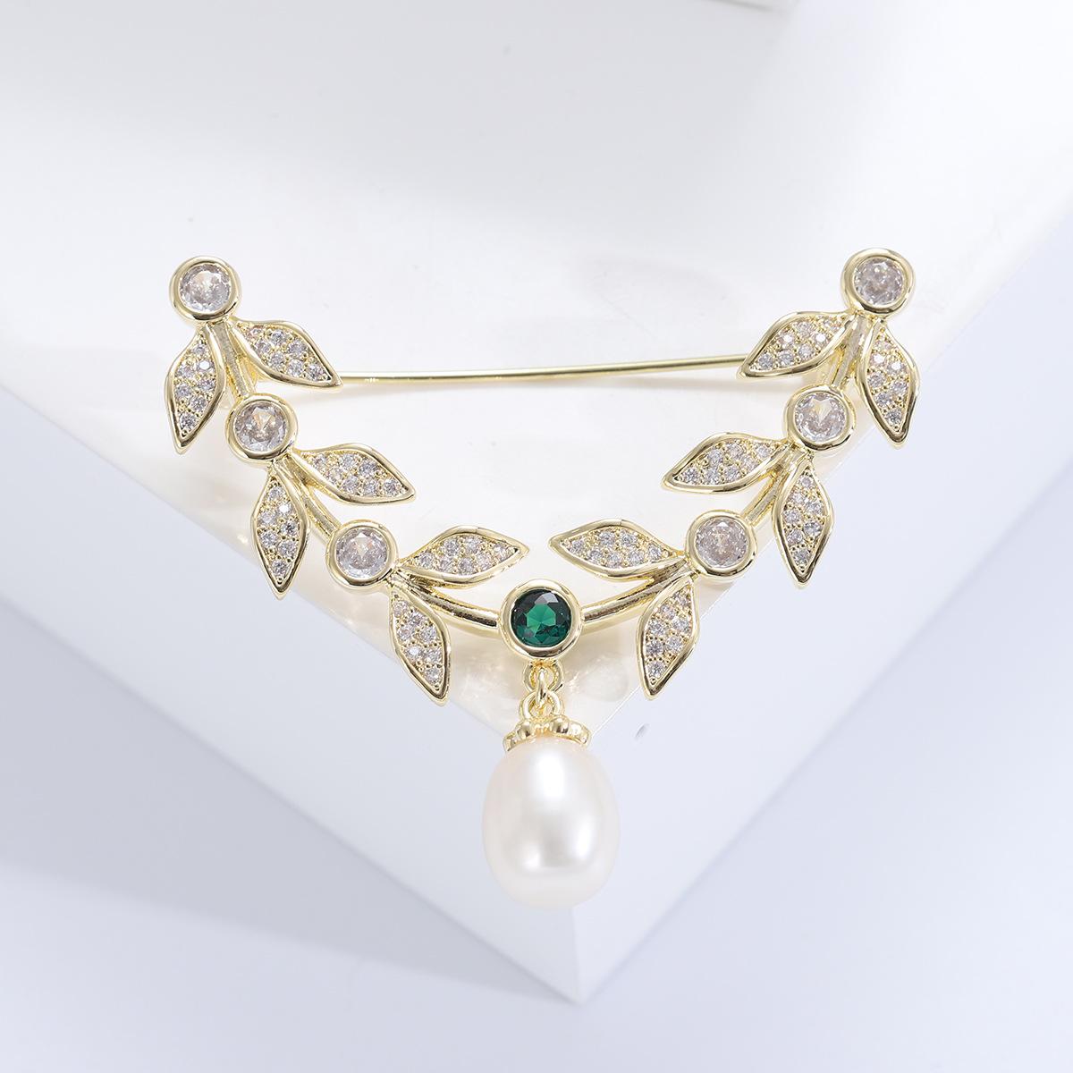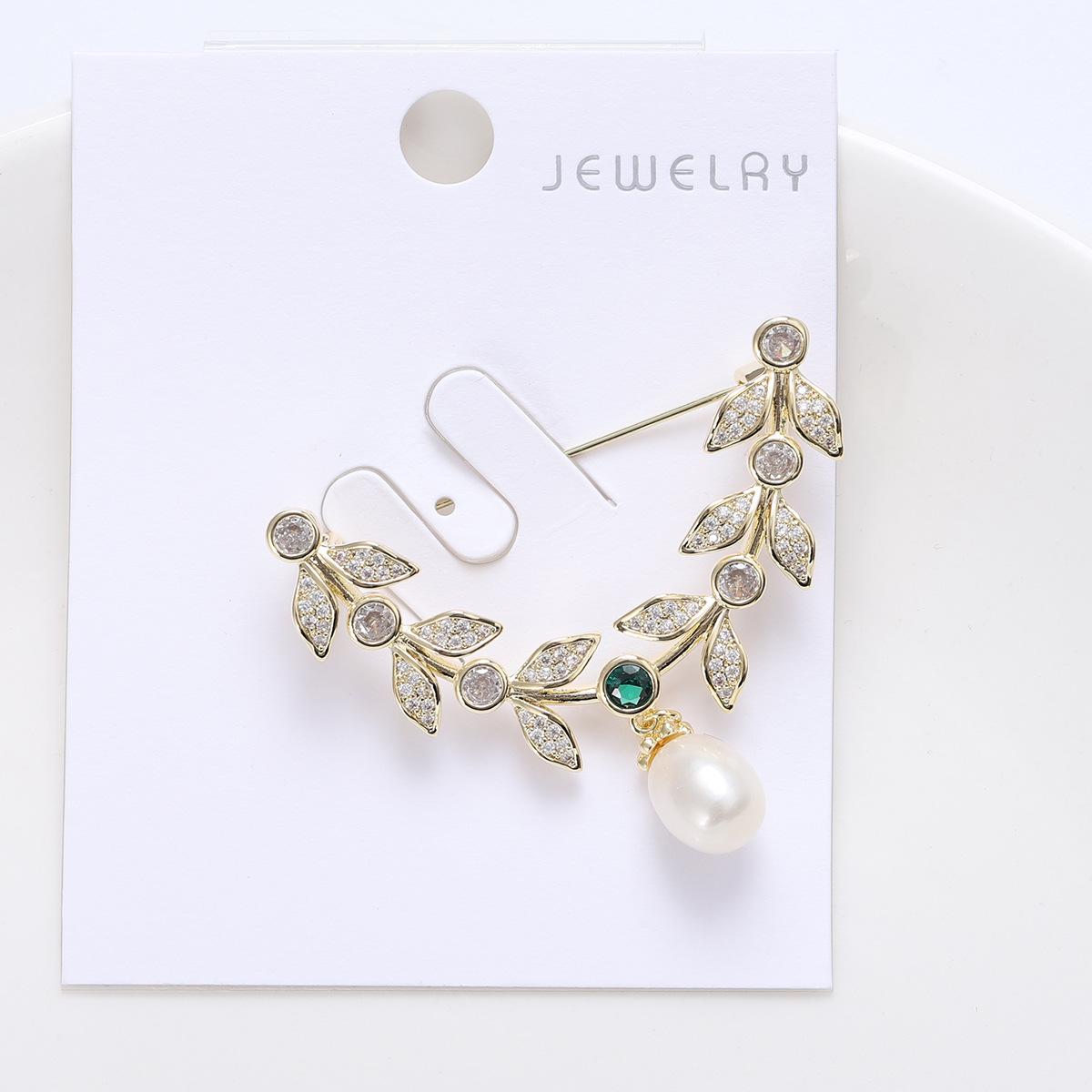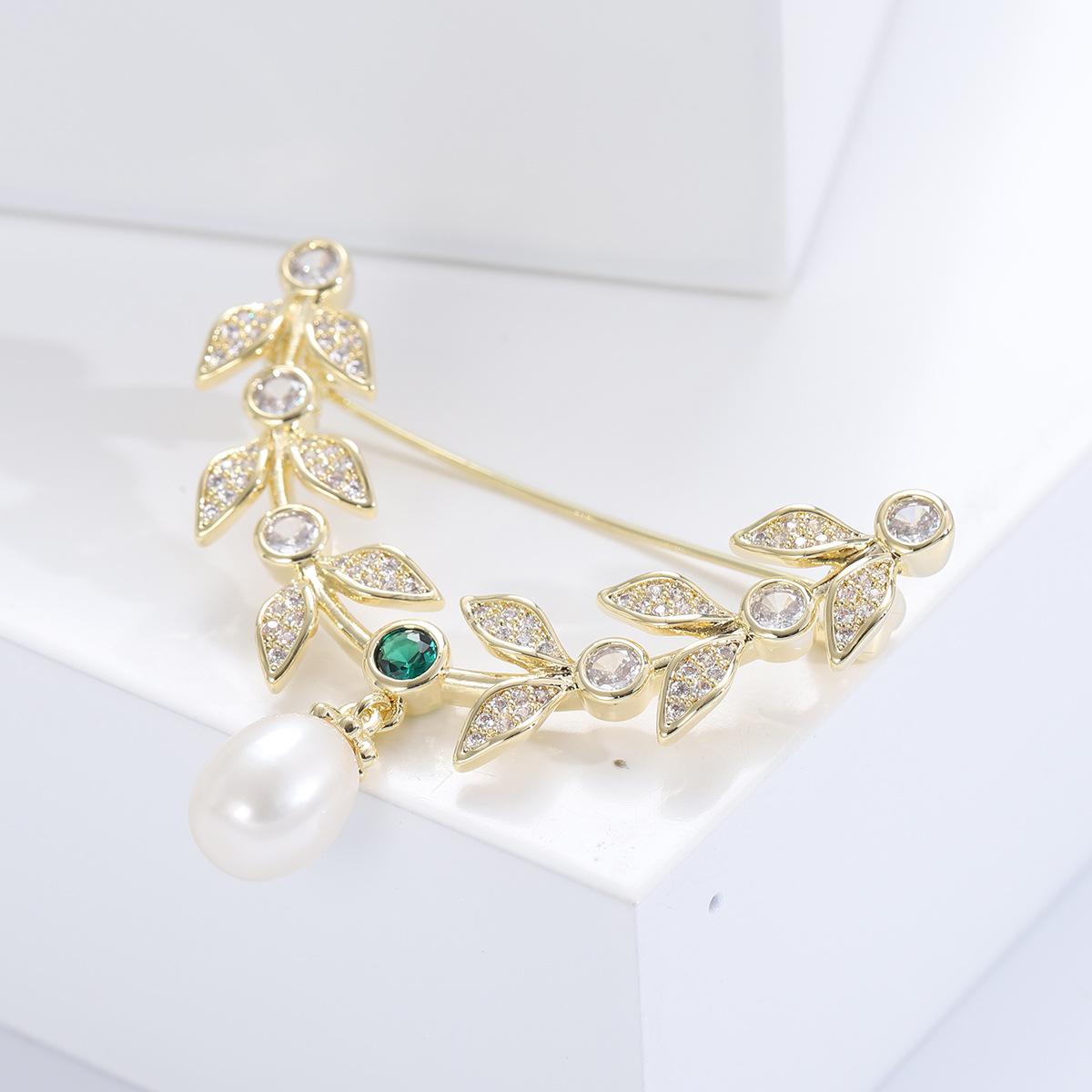 Compre Broche de folha de zircão elegante estilo coreano Pino de estilo de folha de salgueiro de alta qualidade Acessórios de casaco de terno feminino elegante de luxo no atacado no Joom.pro