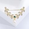 Broche de folha de zircão elegante estilo coreano Pino de estilo de folha de salgueiro de alta qualidade Acessórios de casaco de terno feminino elegante de luxo