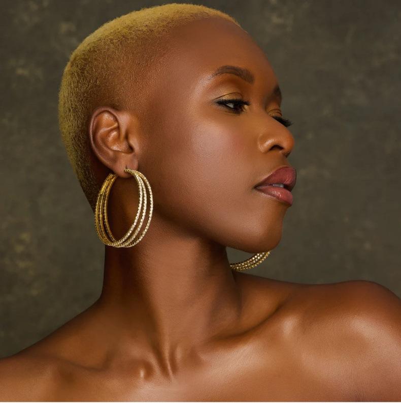 Compre Nova tendência INS transfronteiriça brincos exagerados de strass de três camadas elásticos de arame de aço popular para comércio exterior atacado de joias de corrente garra no atacado no Joom.pro