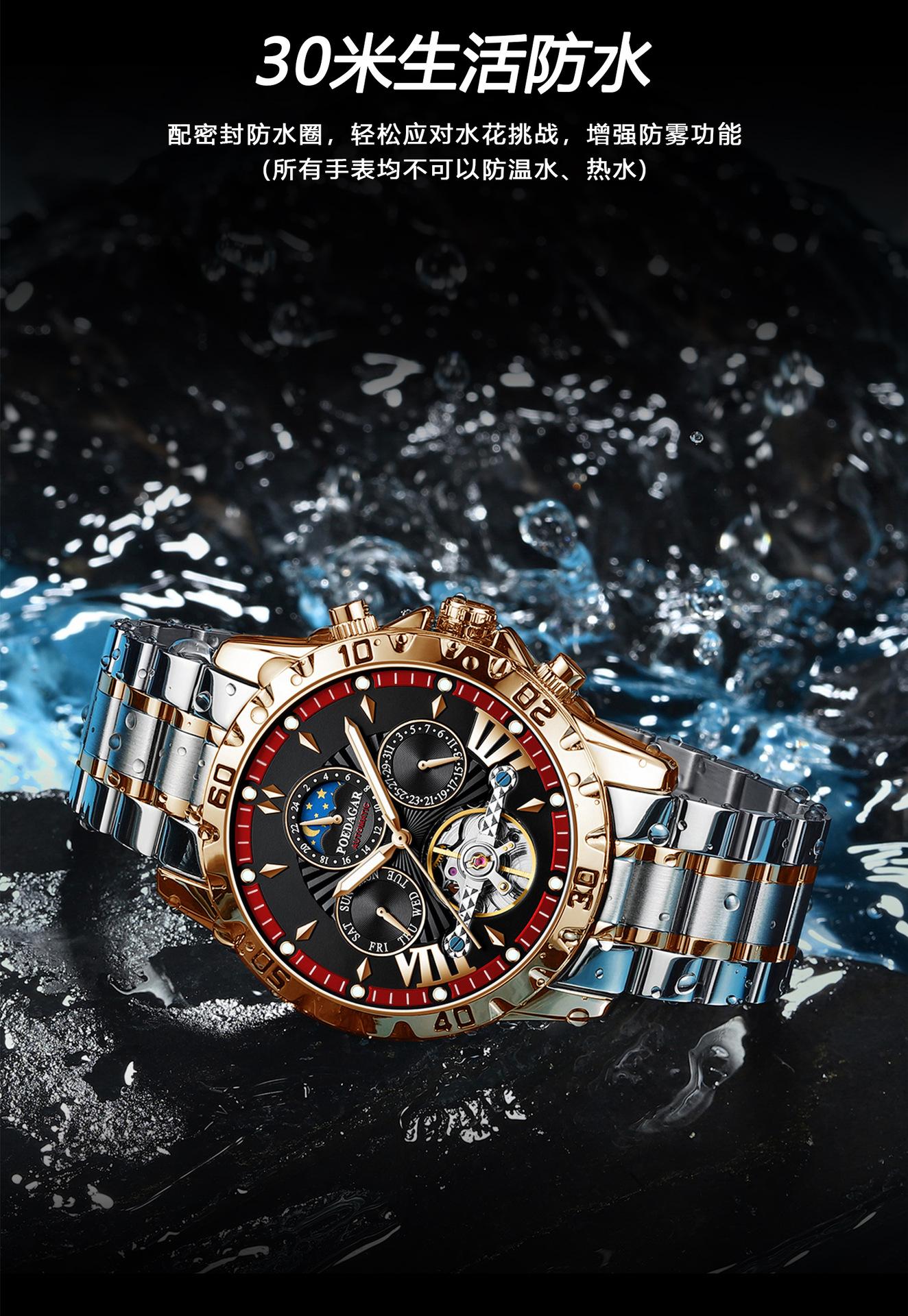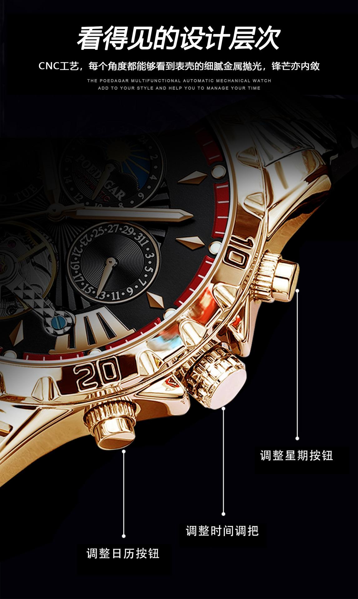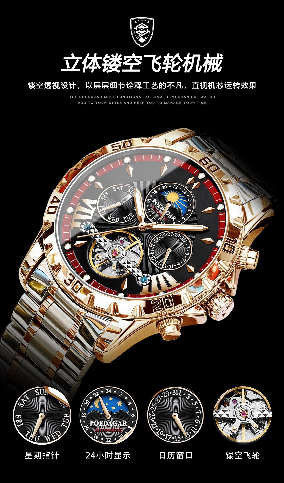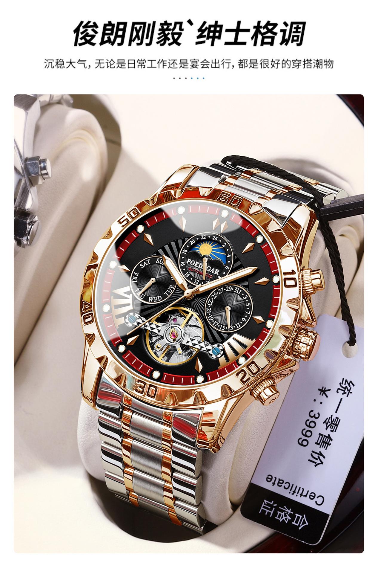 P1410 rose gold black face red ring steel belt, P1410 rose gold black surface blue ring steel belt, P1410 blac...