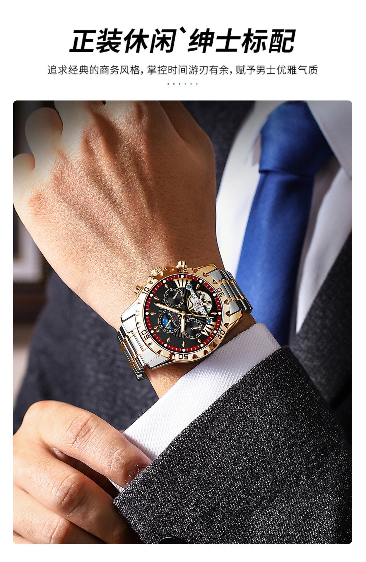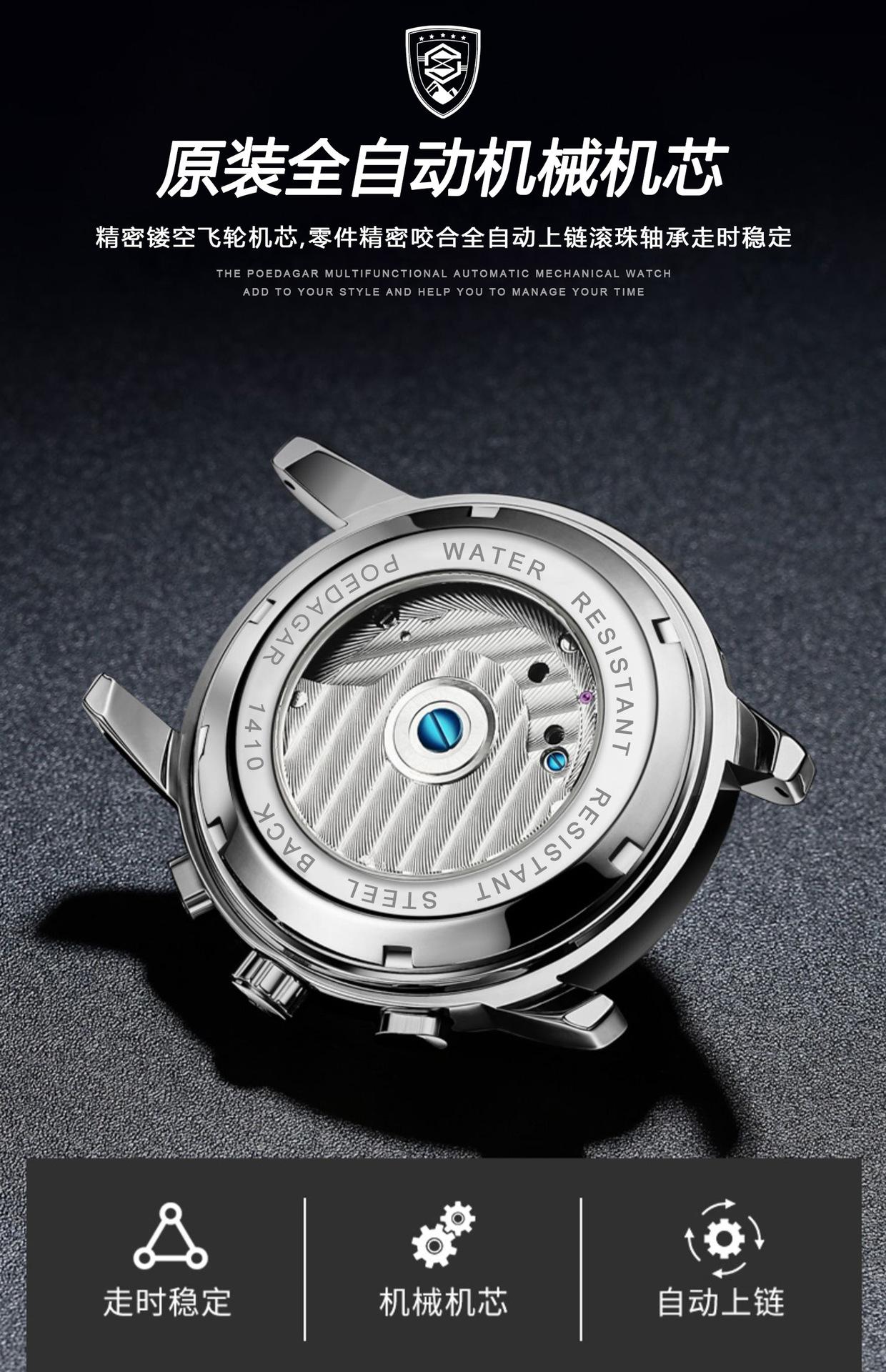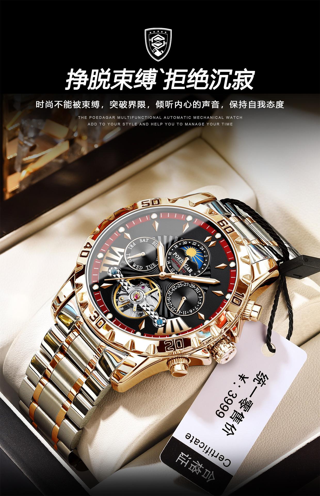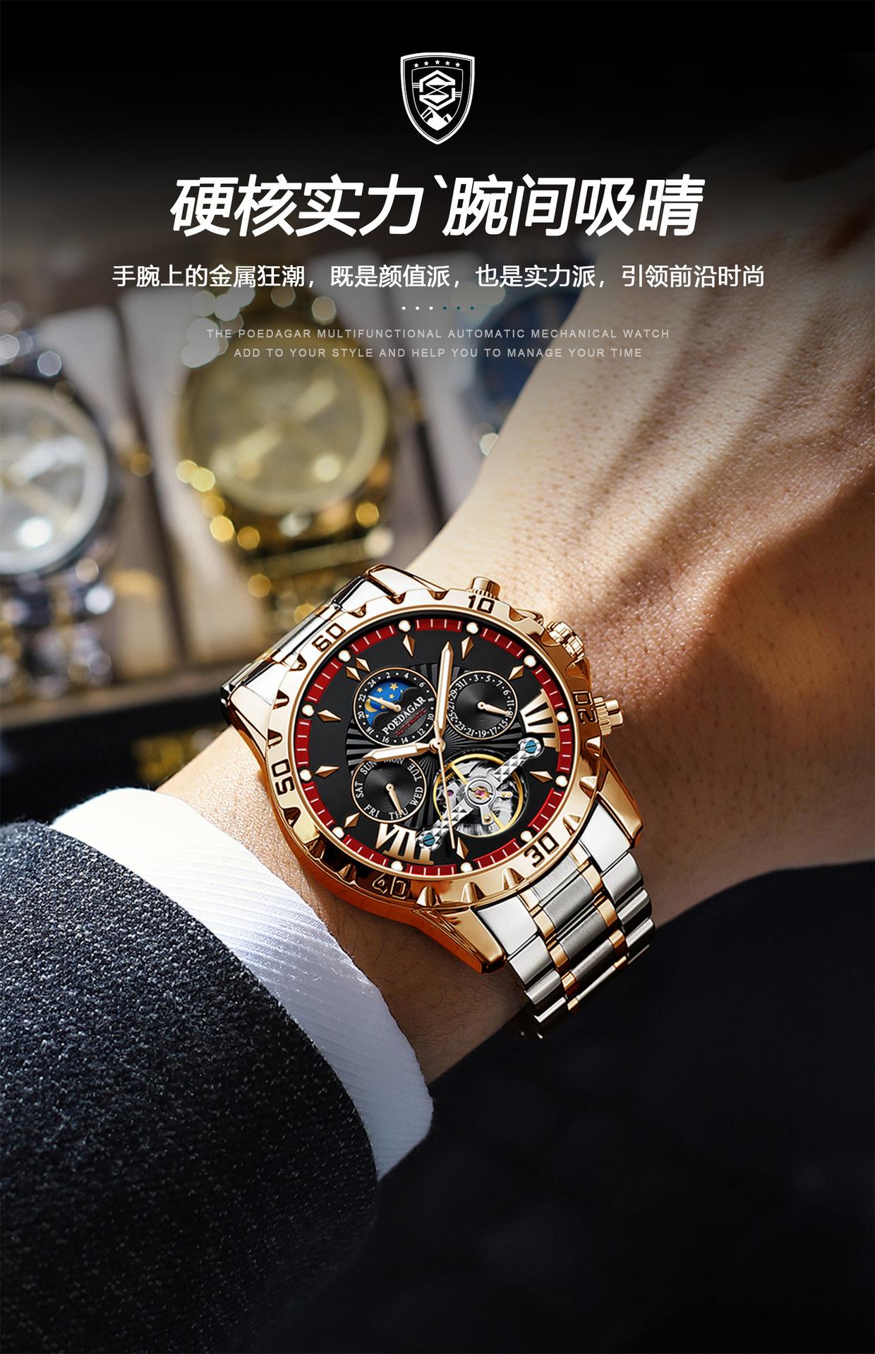 P1410 rose gold black face red ring steel belt, P1410 rose gold black surface blue ring steel belt, P1410 blac...