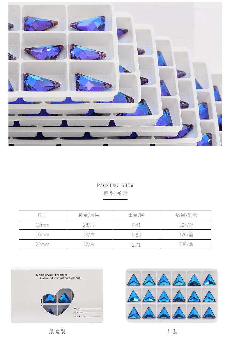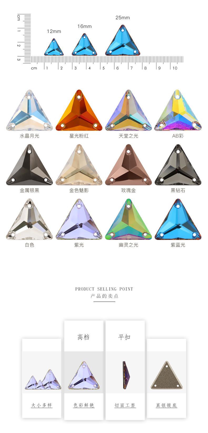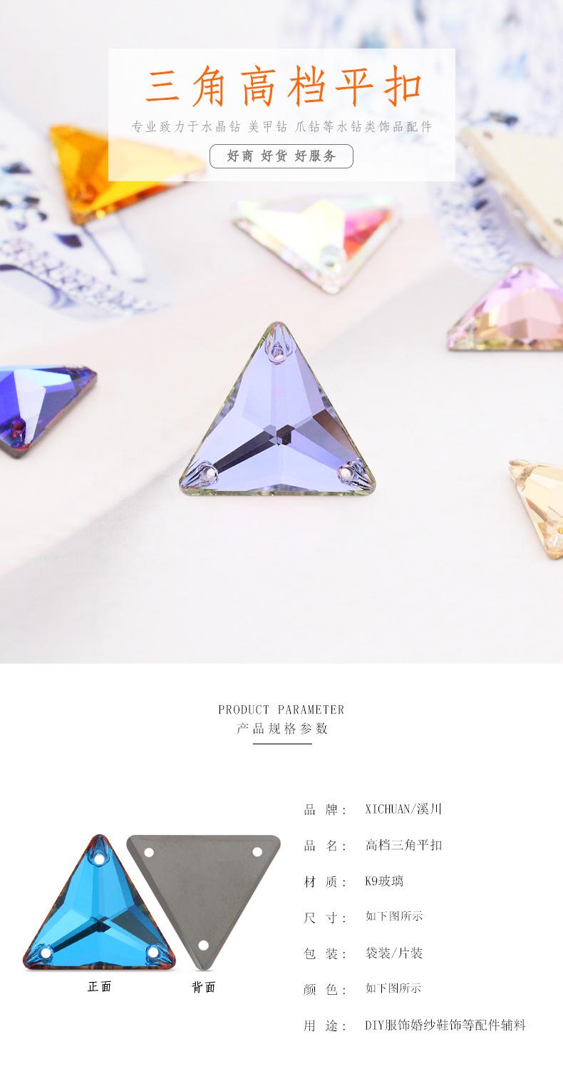K9 Fundo Plano Furo Duplo Pedra Costurada à Mão Diamante Triangular Cristal Diamante Acessórios Vestido de Noiva Bagagem Diamante Triangular Colorido AB