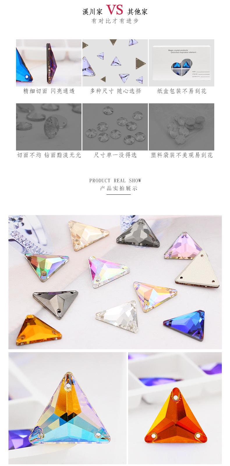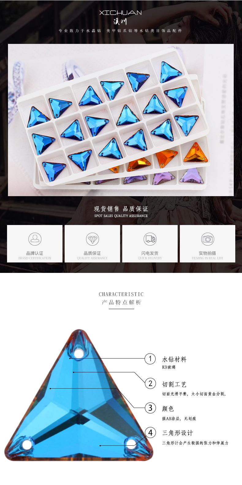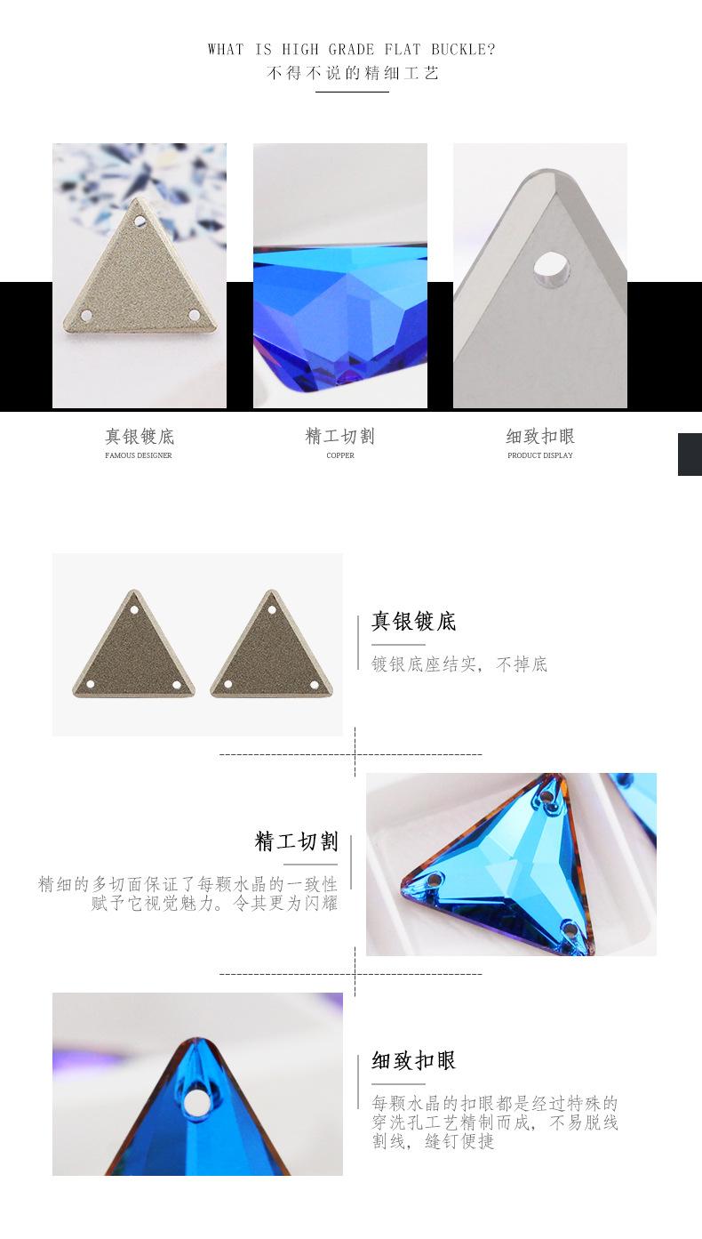 K9 Fundo Plano Furo Duplo Pedra Costurada à Mão Diamante Triangular Cristal Diamante Acessórios Vestido de Noiva Bagagem Diamante Triangular Colorido AB