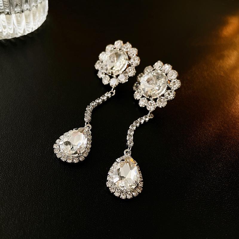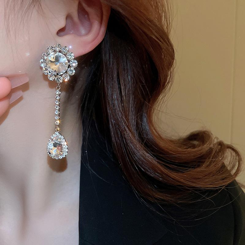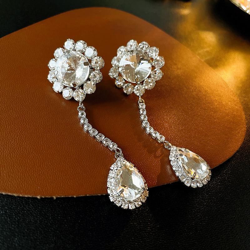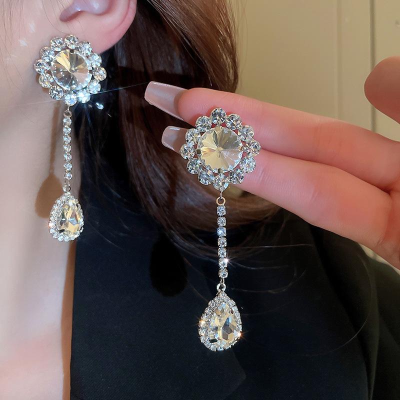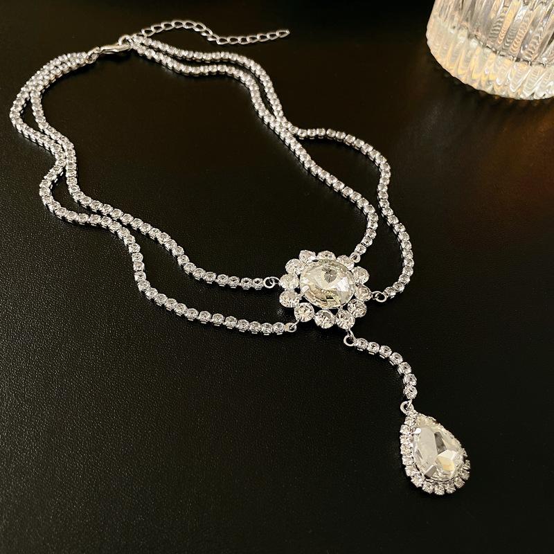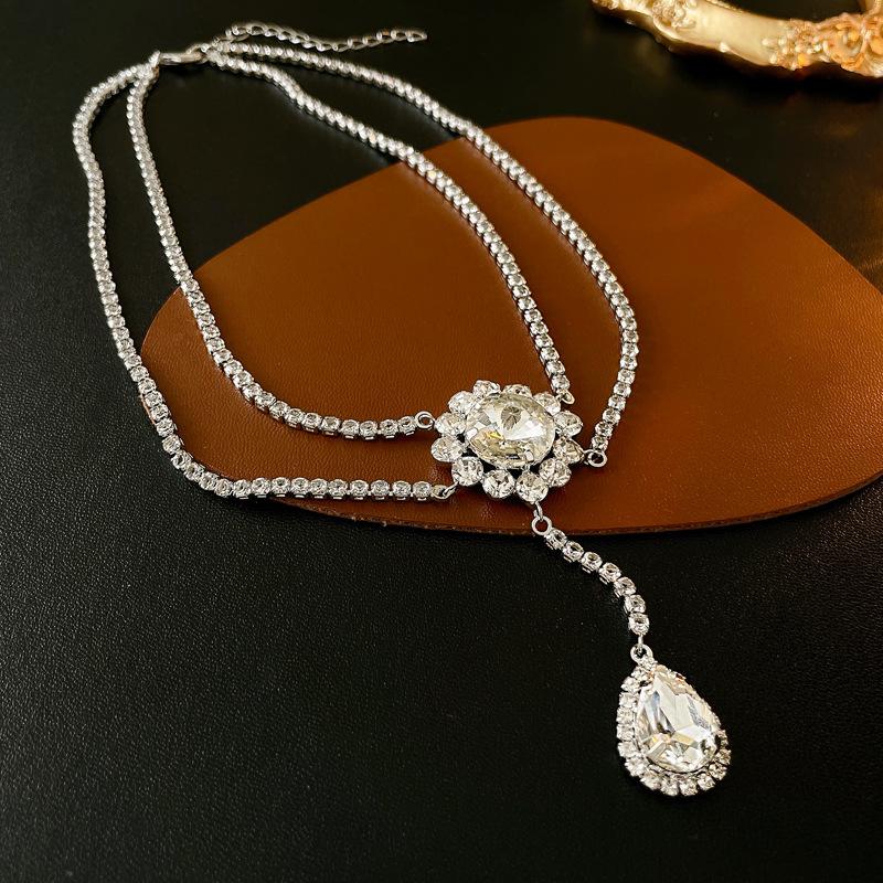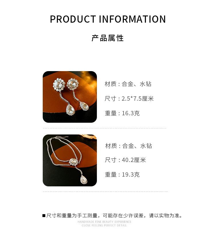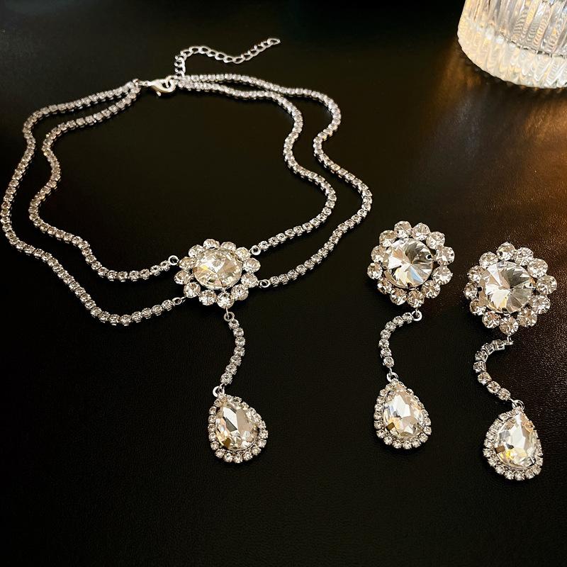 Brincos de Agulha de Prata Luxo Leve Zircônia com Incrustações de Diamantes Flor Borla Gota d'Água Moda Nicho Elegante Colar e Brincos High-End para Mulheres