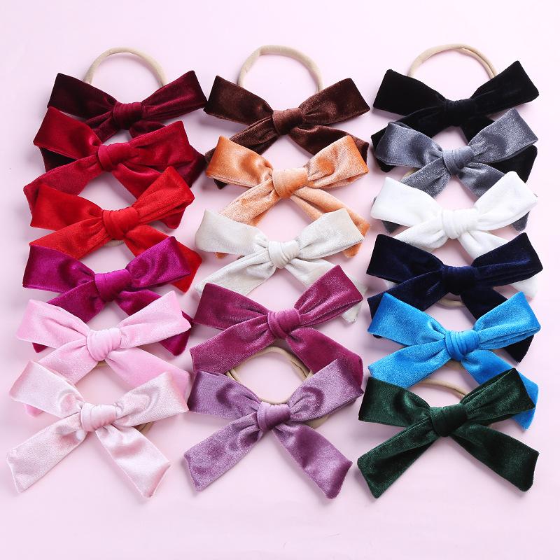 Amazon venda quente Europeu e Americano super macio veludo coreano laço grande faixa de cabelo de bebê 5 polegadas crianças menina faixa de cabelo de nylon